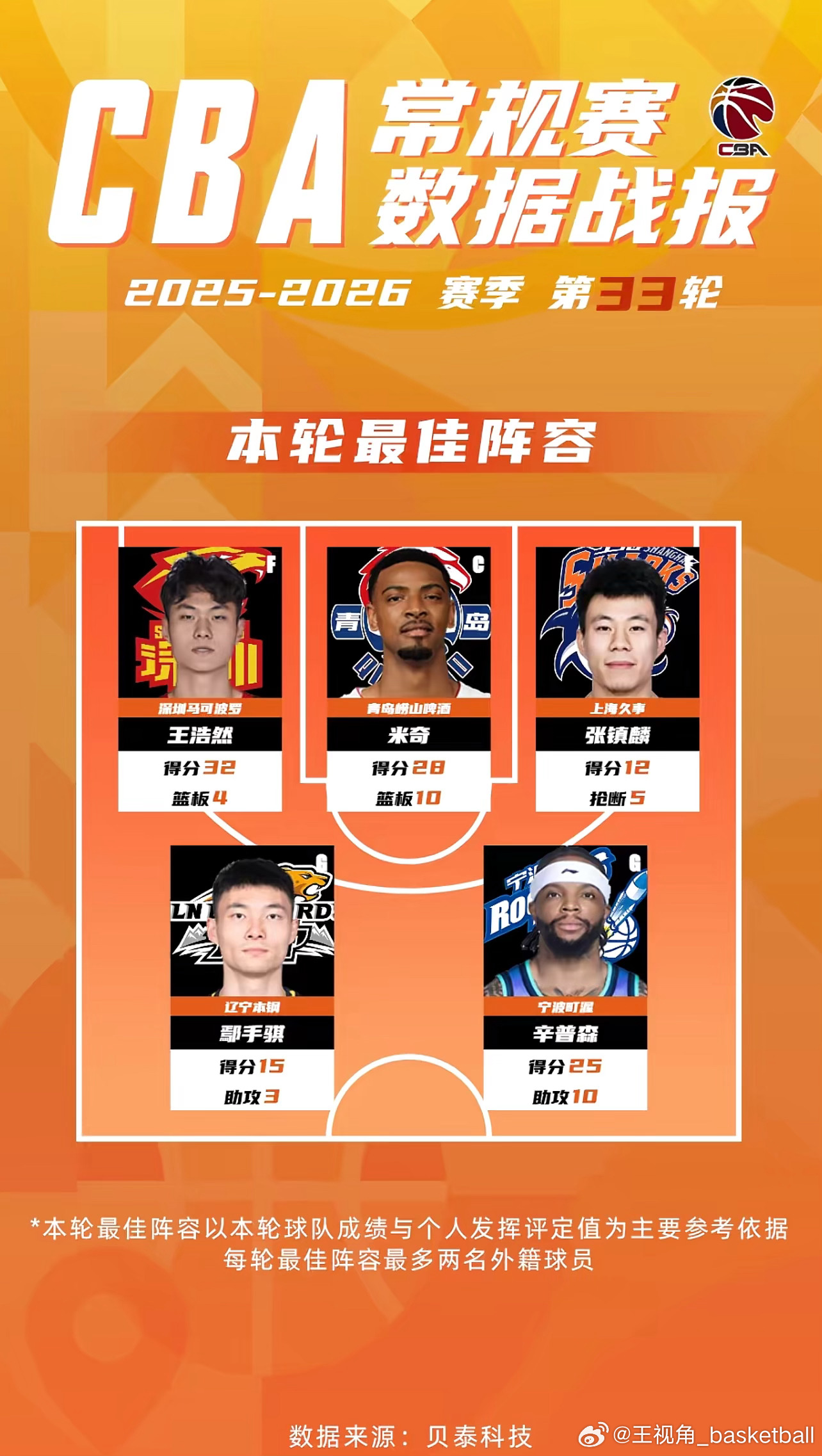 手帝入选CBA本轮最佳阵容,再这么整快进国家队了CBA