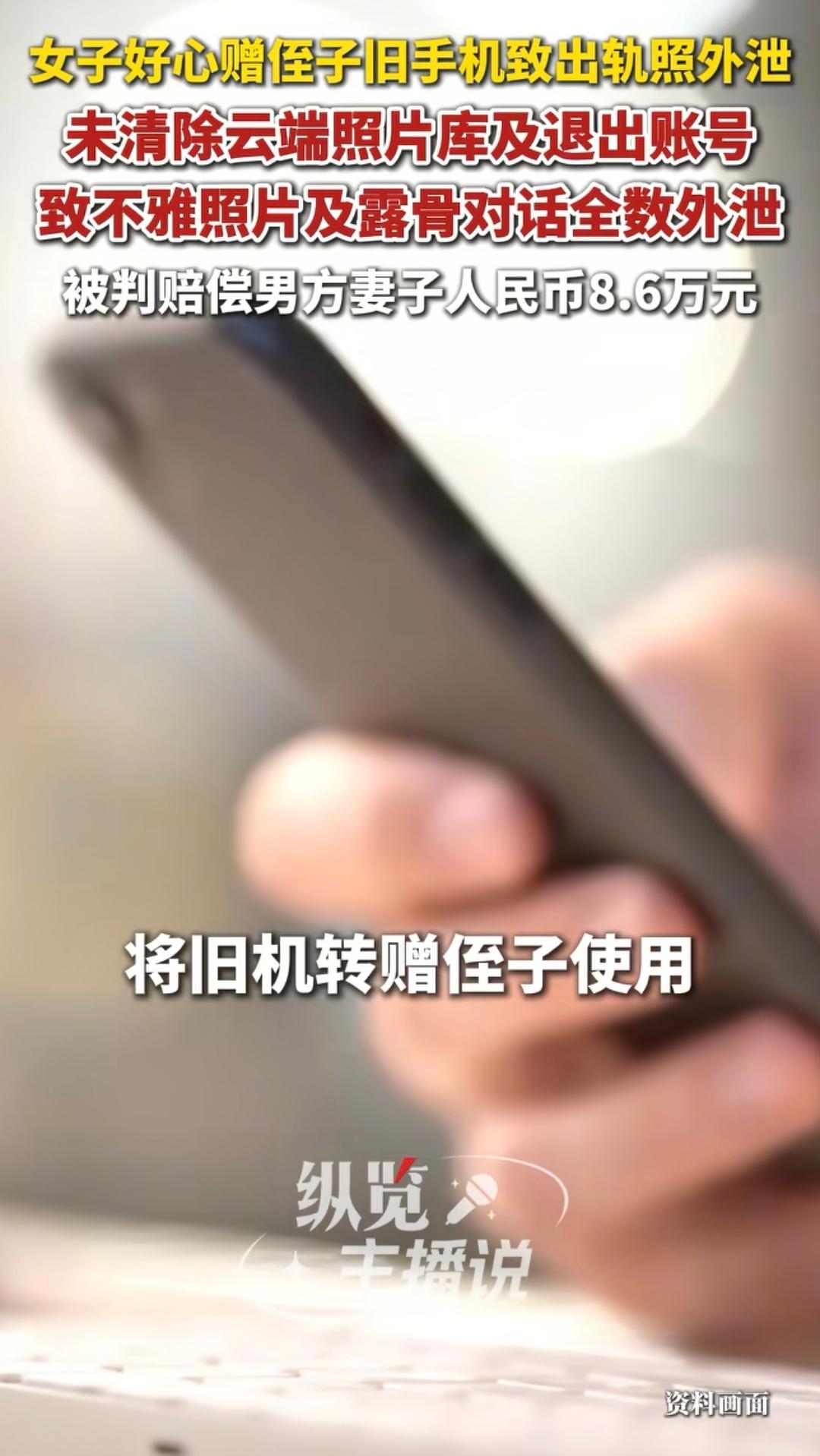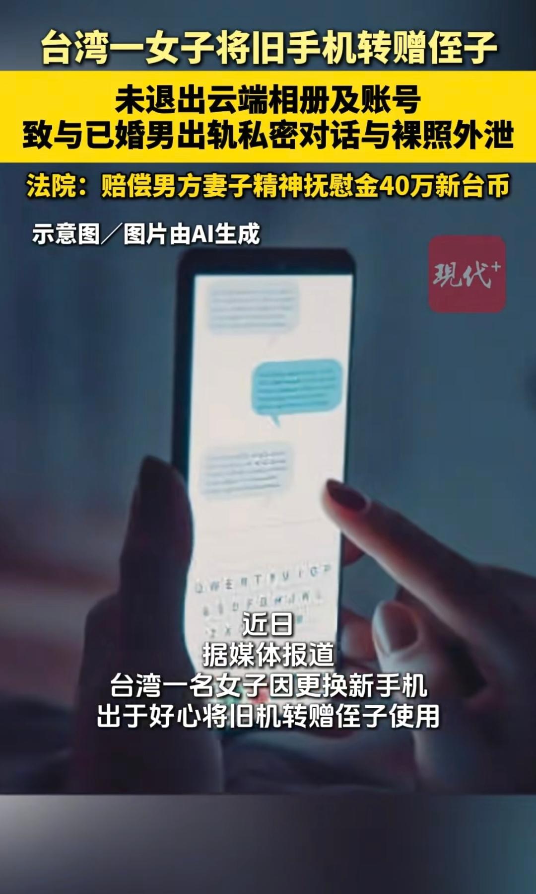 女子把旧手机送给侄子,没删照片没退账号,结果私密照和露骨聊天记录全被看光还传了出去,最后直接赔了 8 万多! 台湾一位大姐换新手机,觉得旧机子扔了可惜,好心送给侄子用。 可她偏偏忘了退出 iCloud,也没删任何东西,手机一激活,里面和已婚男子的私密照片、不堪入目的聊天记录,自动同步得干干净净。 侄子一看直接傻眼,内容越看越刺激,没忍住到处说,一来二去直接传到了男方原配手里。 原本藏得严严实实的出轨行为,瞬间变成铁证,想抵赖都难。 原配直接起诉,法院判女子赔偿约8.6 万人民币。 更搞笑的是,她在法庭上还委屈巴巴地说侄子侵犯她隐私。 法官当场回怼:是你自己亲手把证据送上门的,怪谁? 这件事说白了,一点也不冤。 先是插足别人婚姻,破坏家庭,道德上站不住脚; 又心大到把存满私密证据的手机随便送人,连账号都不退,相当于主动 “自爆”。 最后隐私泄露、名声尽毁、还要赔钱,纯纯是自己坑自己。 也给所有人提个醒: 旧手机不管卖还是送,一定记得恢复出厂设置、退出所有账号! 做人更要守底线,不然怎么翻车的都不知道。