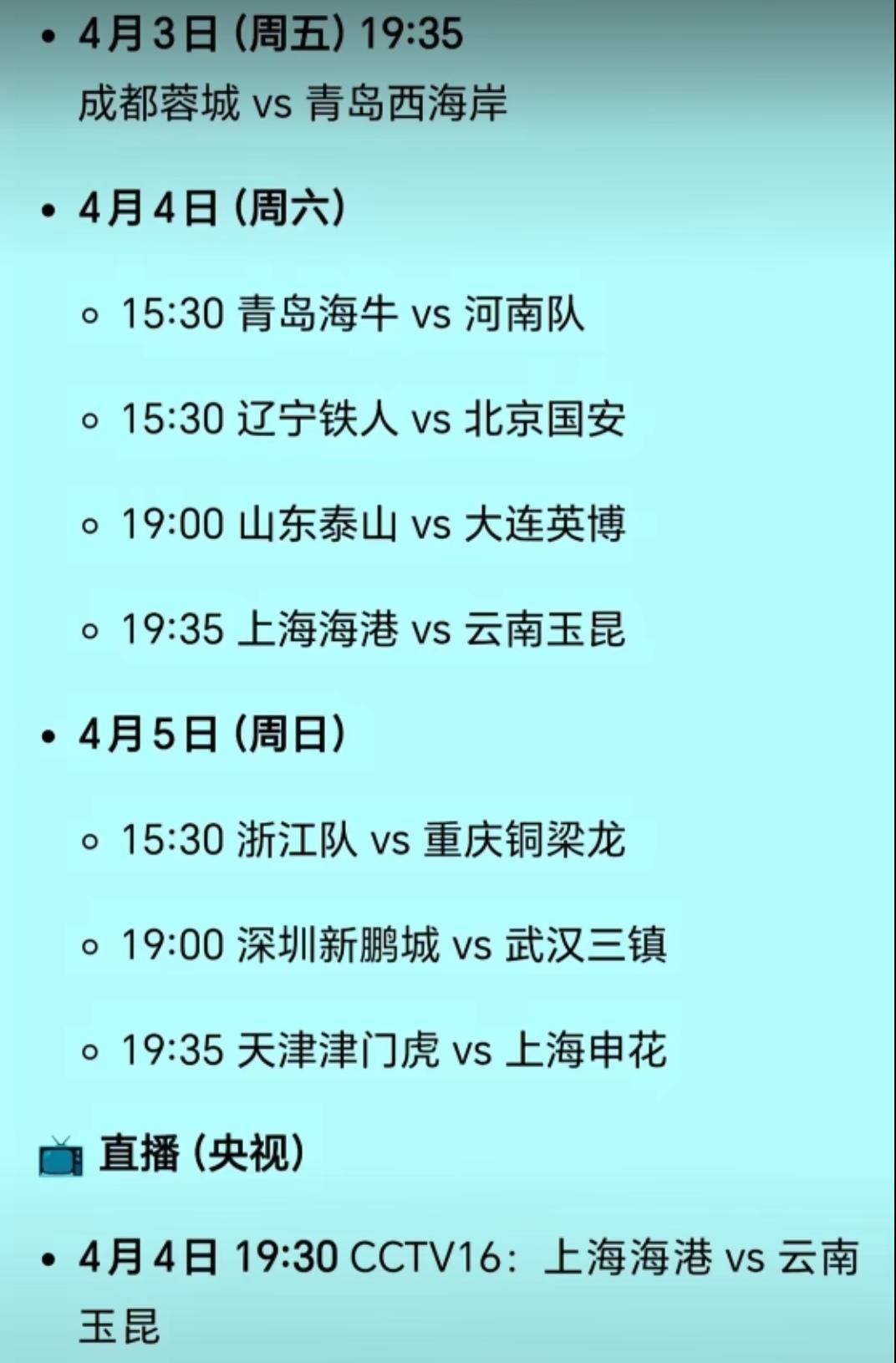 成都蓉城倍受重视啊!中超联赛第四轮4月3日只安排了蓉城vs青岛西海岸这一场比赛,这样的安排可以让全国球迷的关注点都在蓉城身上,对于蓉城来说既是压力也是动力,总之蓉城赢球就是好消息。