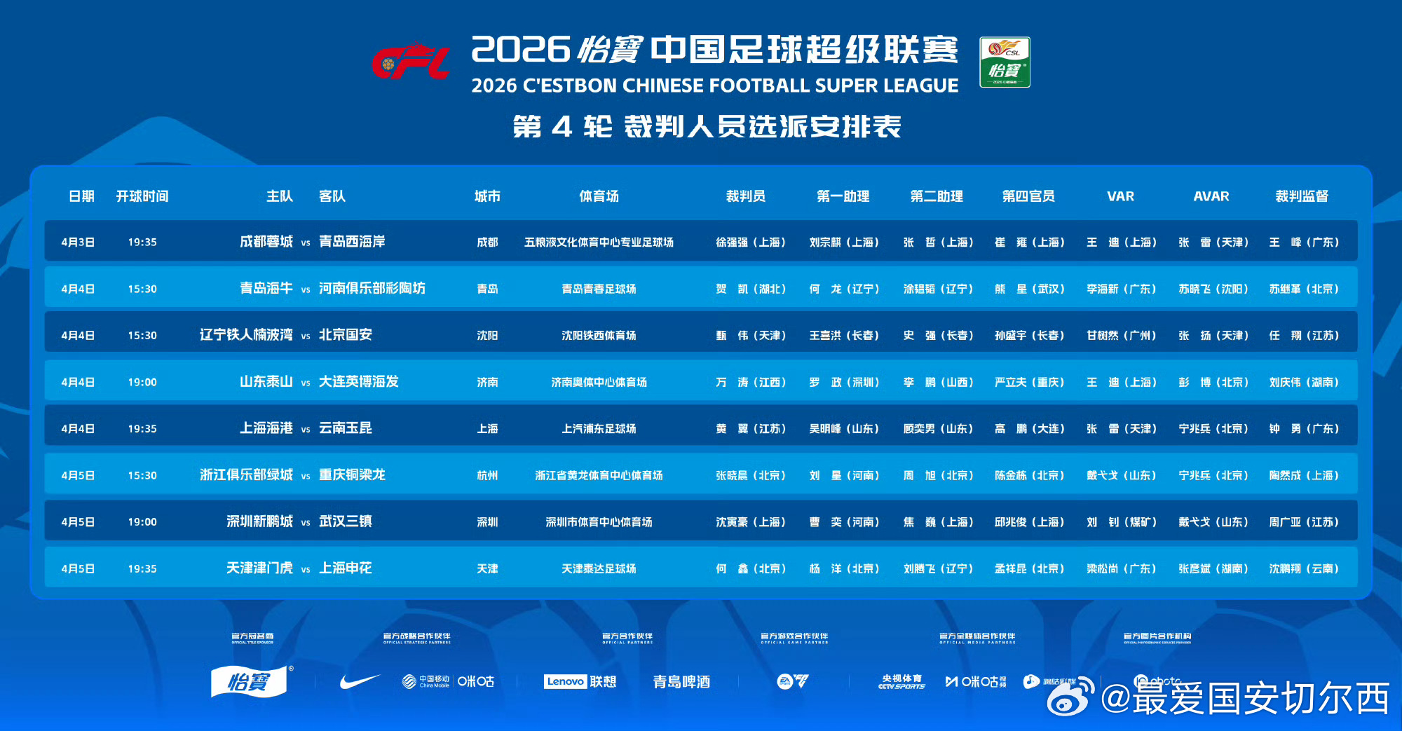【中超第4轮 辽宁铁人 VS 国安 裁判信息】