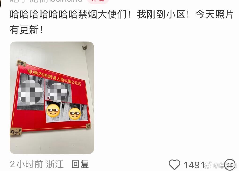 这个办法不错,既然你选择在电梯里抽烟恶心别人,那就别怪别人把你照片贴出来了。但是话说回来,这种办法也仅仅适用于“还要点脸”的人,如果抽烟的是什么都无所谓的货,那其实一点用都没有…..反正,我是对电梯里抽烟的人深恶痛绝。物业保安也没有权力处罚乱抽烟的,帽子叔叔也不一定愿意管。在控烟这件事上,咱就不能学学新加坡么…..电梯抽烟者照片公示栏禁烟深圳卫健委曾发文二手烟也是一种霸凌