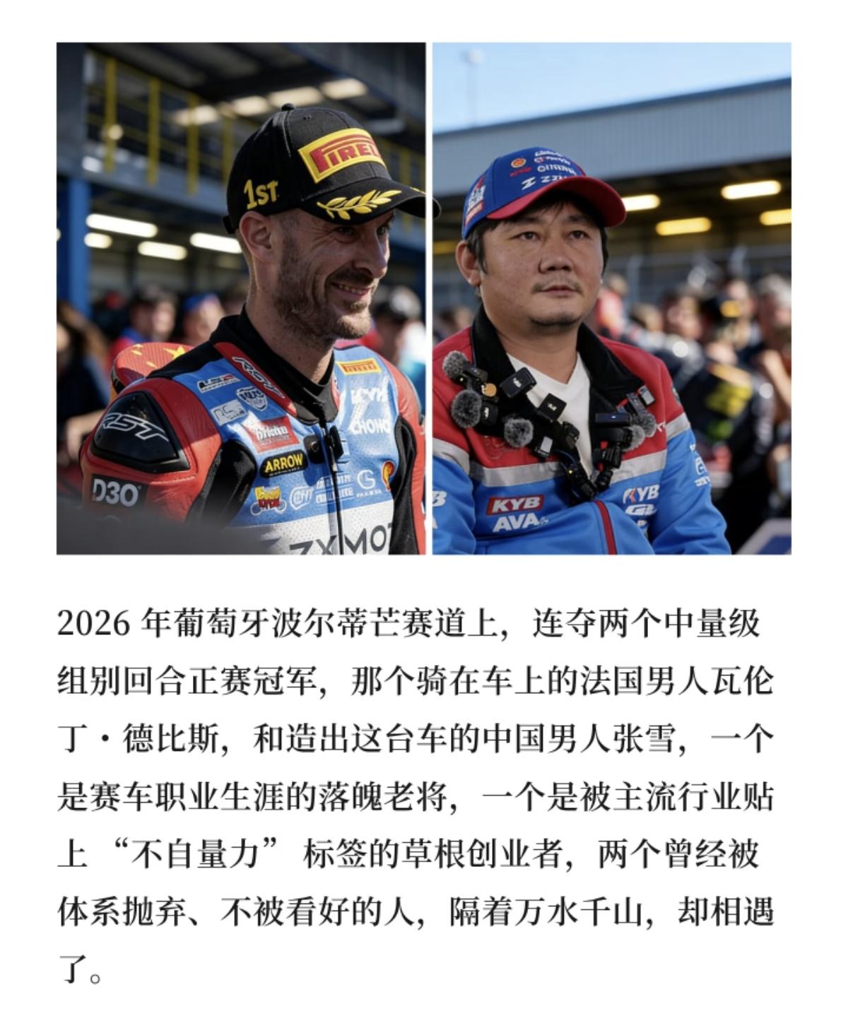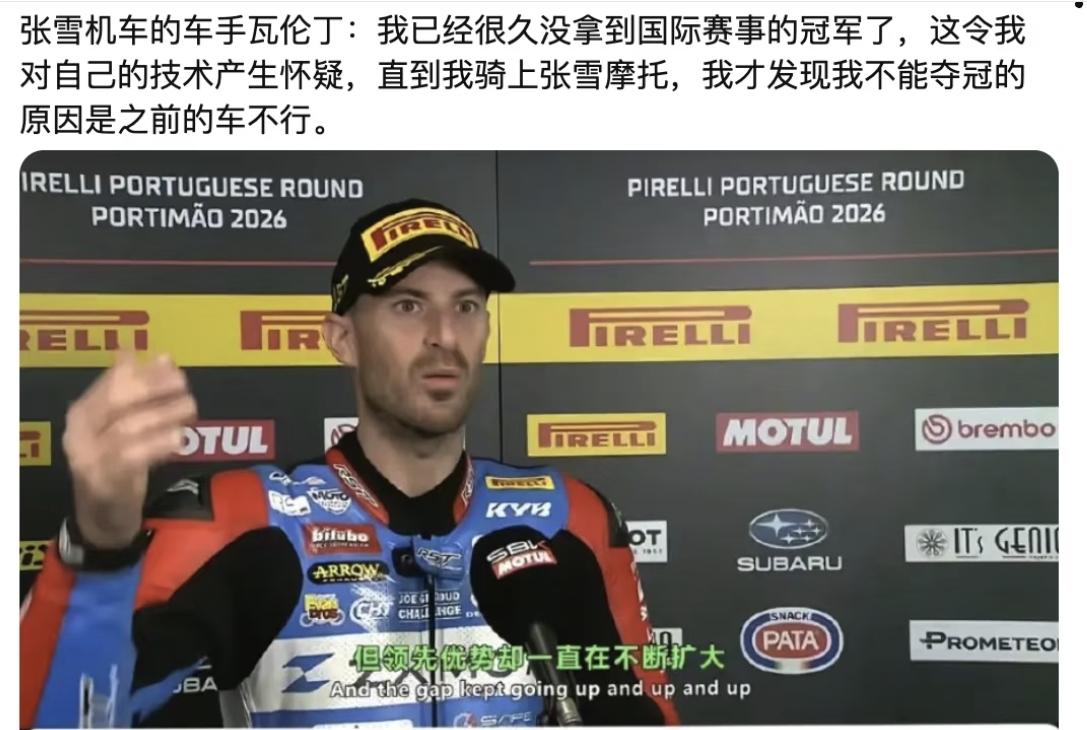 这车手一看就是老实人的样子,要是一副奸诈嚣张高傲狂妄的长相,大家也没那么高兴,老实人复仇成功,特别爽。 全世界老实人的长相都是通用的: 皱眉头撅嘴的样子。因为老实人不是很明白别人在干啥就皱眉头,看看还是咬牙上吧,就撅嘴。 他在雅马哈车队不出成绩,后期也不让上场,曾经日日夜夜反省自己,都反省秃了,好好的34岁小伙,愣是给熬成50岁的沧桑感,结果发现不是自己的问题,换个车什么问题都没有了,想拉爆就拉爆了。 最讽刺的是那些进口机车最便宜的本田雅马哈是11万,落地加保险还有将近4万,张雪机车4万多[捂脸]竞技体育一般0.1秒都能决胜负了,他却用张雪机车拉出3秒多接近4秒的差距。 澳大利亚站拍的时,老板张雪亲自给他撑伞,老瓦:老板待我若国士,我必以死侍报之。你为我撑伞,我为你争雄! 张雪 张雪机车 机车