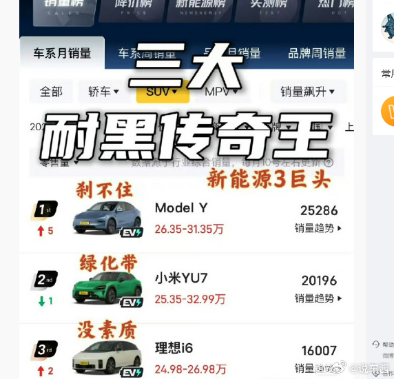 2月份,20万-30万SUV交付量排序是特斯拉model Y- 小米YU7-理想i6