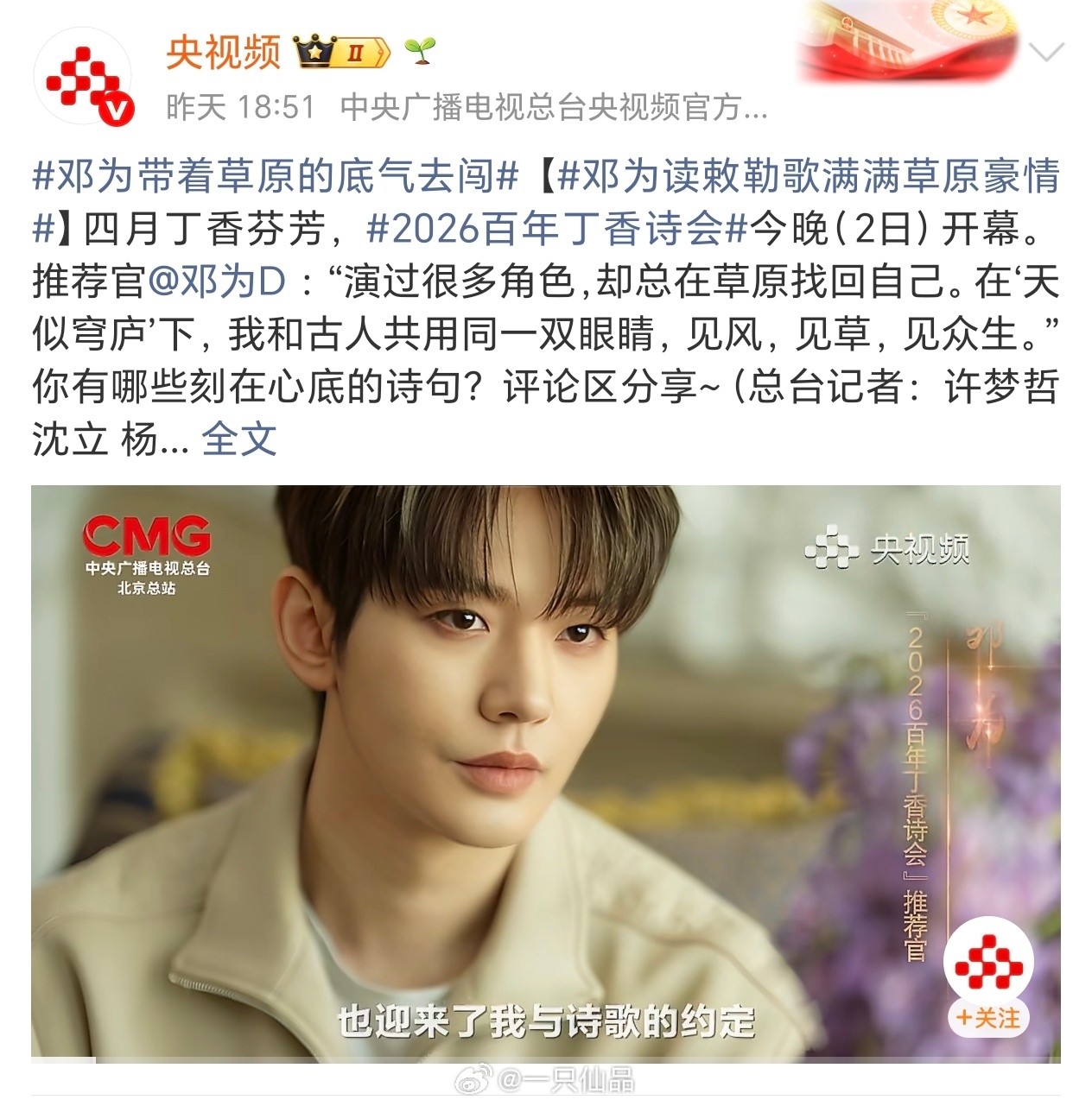 邓为清醒不浮躁,温柔有锋芒真正的顶流,从来不是靠热搜堆砌,而是用言行细节积累的人心,我看好他邓为再担丁香诗会推荐官