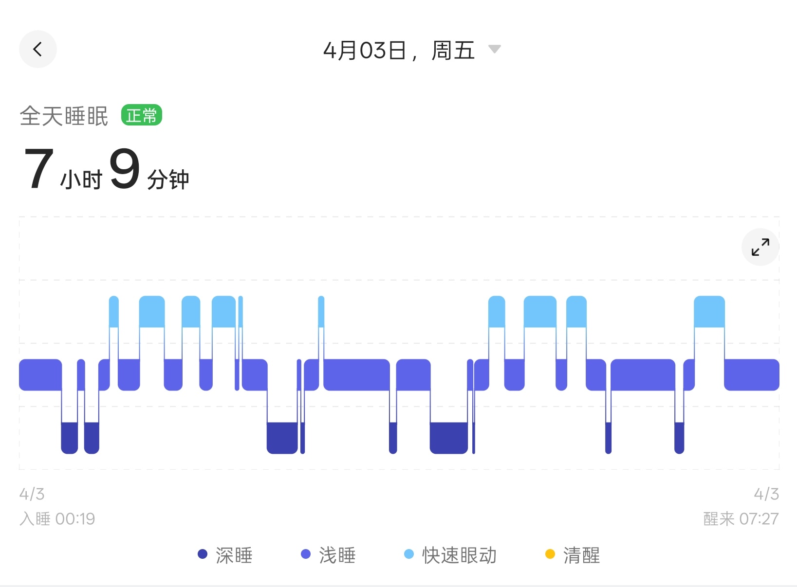 昨天终于睡了个好觉 虽然只有72分,架不住睡眠时间是这一个月最长了。