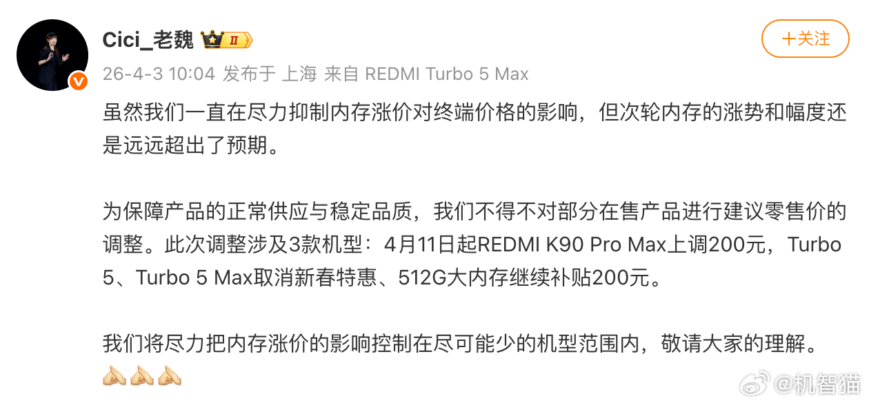 REDMI也扛不住成本压力了,宣布部分机型涨价