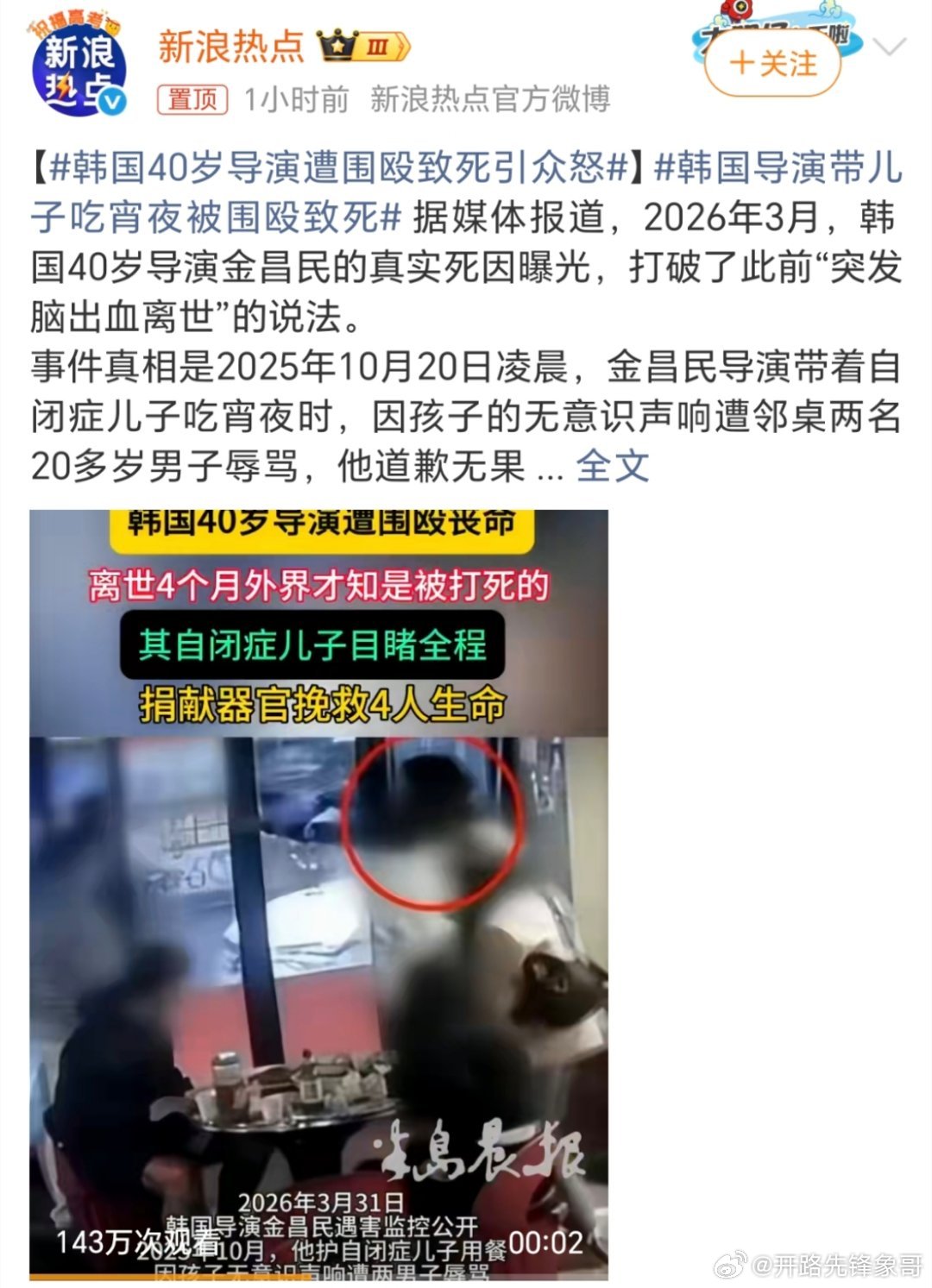 韩国40岁导演遭围殴致死引众怒让其自闭症孩子亲眼目睹了一切,真的是无语,,这种环