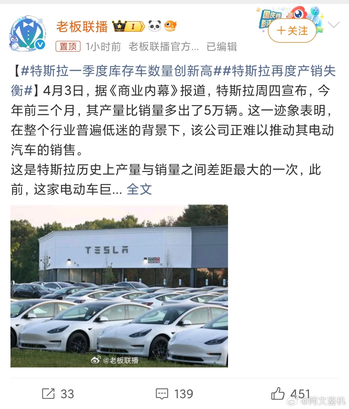 特斯拉再度产销失衡强如特斯拉也照样遇到这种产销失衡的问题,一方面是国内新能源汽车的竞争过于激烈,分摊了特斯拉的销量。另外也可见现在新能源汽车的大环境有多差,目前竞争已经进入白热化阶段,汽车厂商再不拿出看家的本领的话,如果今年月销还不能过万的车企,很有可能会被淘汰,而接下来的销量也会逐渐向头部企业靠拢,毕竟大家都怕自己买的车过几年牌子都没了那就尴尬的。