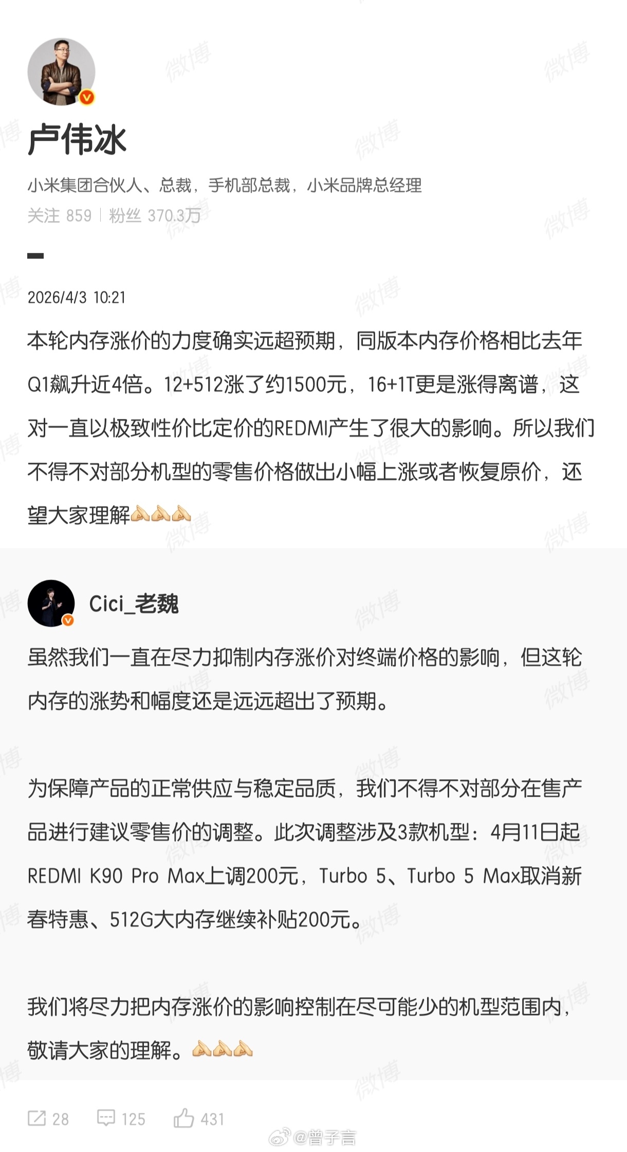 小米也没能抗住存储芯片的成本飙升,官宣调价。