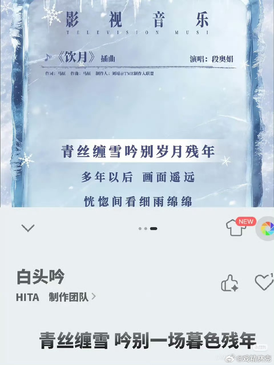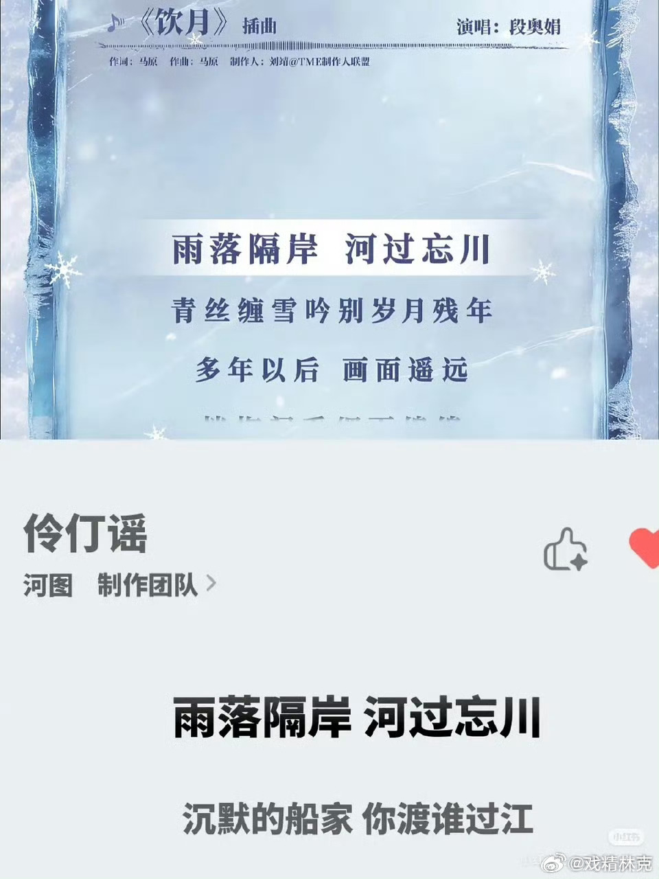 冰湖重生OST饮月目前放岀来的片段已经抄袭了三首古风圈热曲《伶仃谣》《白头吟》《
