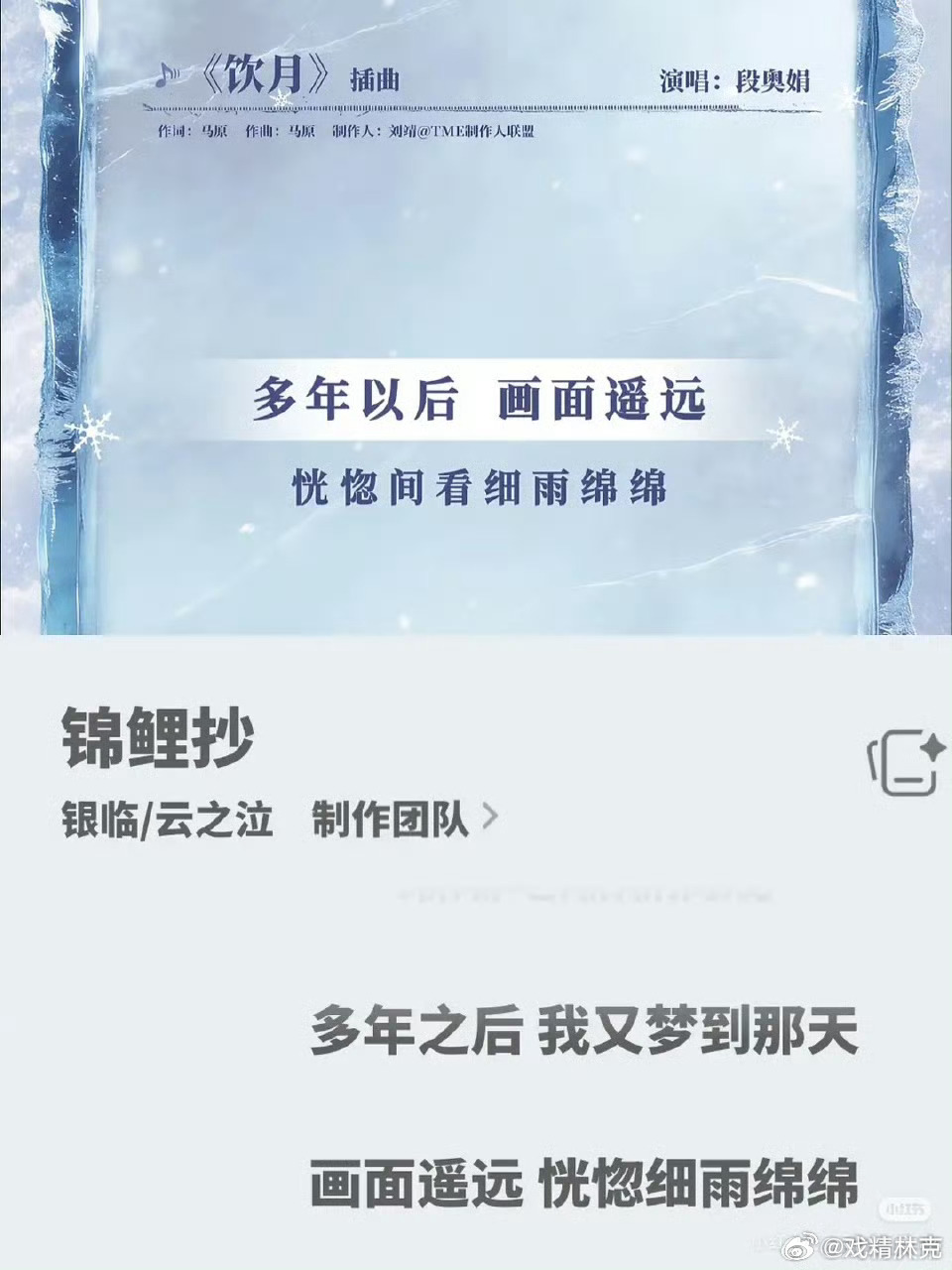 冰湖重生OST饮月目前放岀来的片段已经抄袭了三首古风圈热曲《伶仃谣》《白头吟》《锦鲤抄》的歌词,传说中的拼好歌