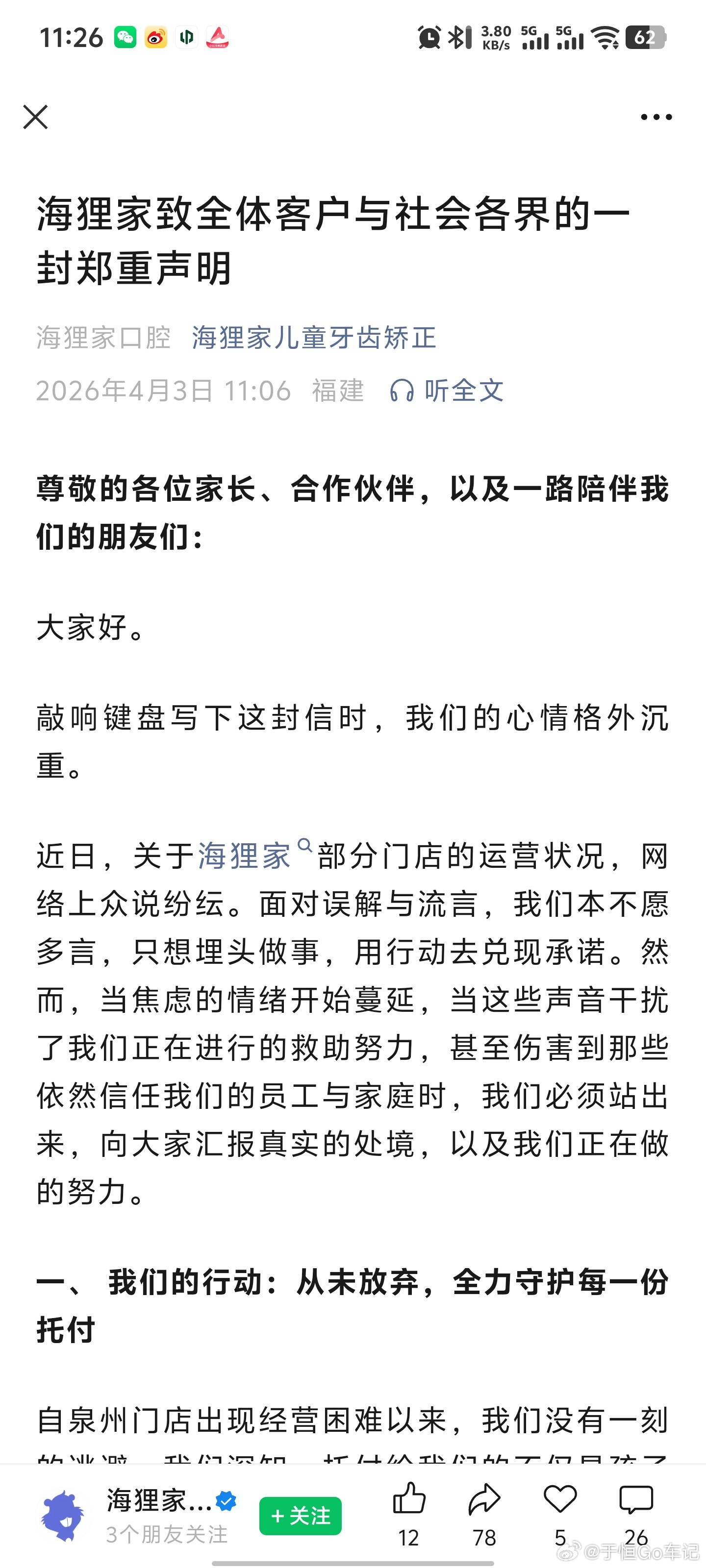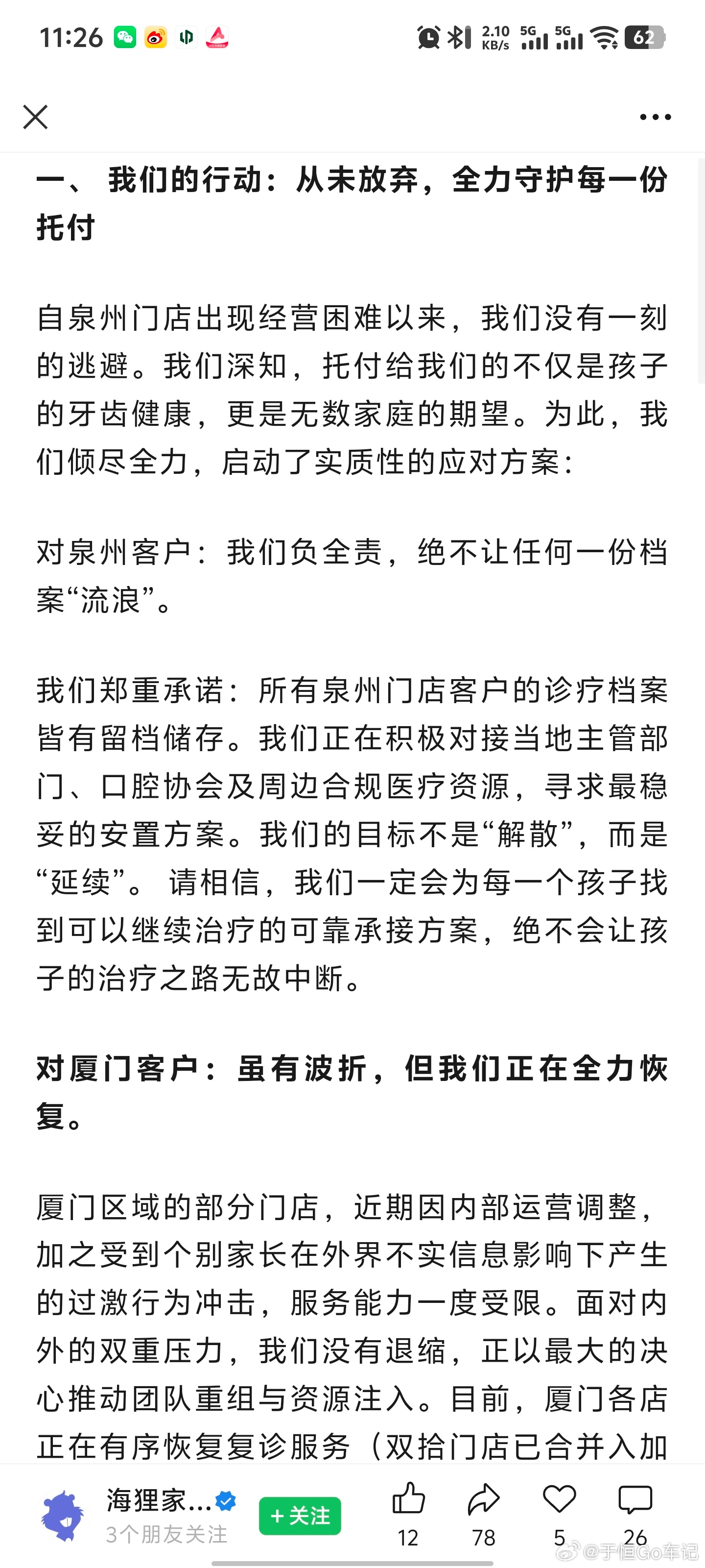 海狸家口腔刚在公众号发了条公告这几年各行各业确实有经营困难的问题也希望他们能尽快恢复经营吧 海狸家口腔维权 海狸家口腔