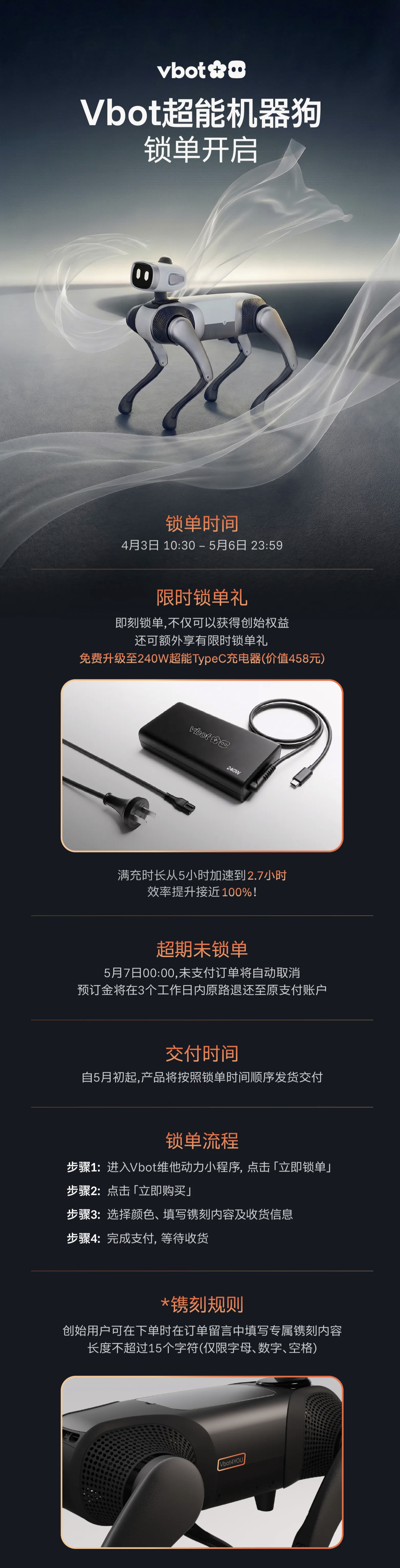 首发用户额外赠送240W充电器,让狗狗只要2个多小时就能充满电,这个意义还是很大的。