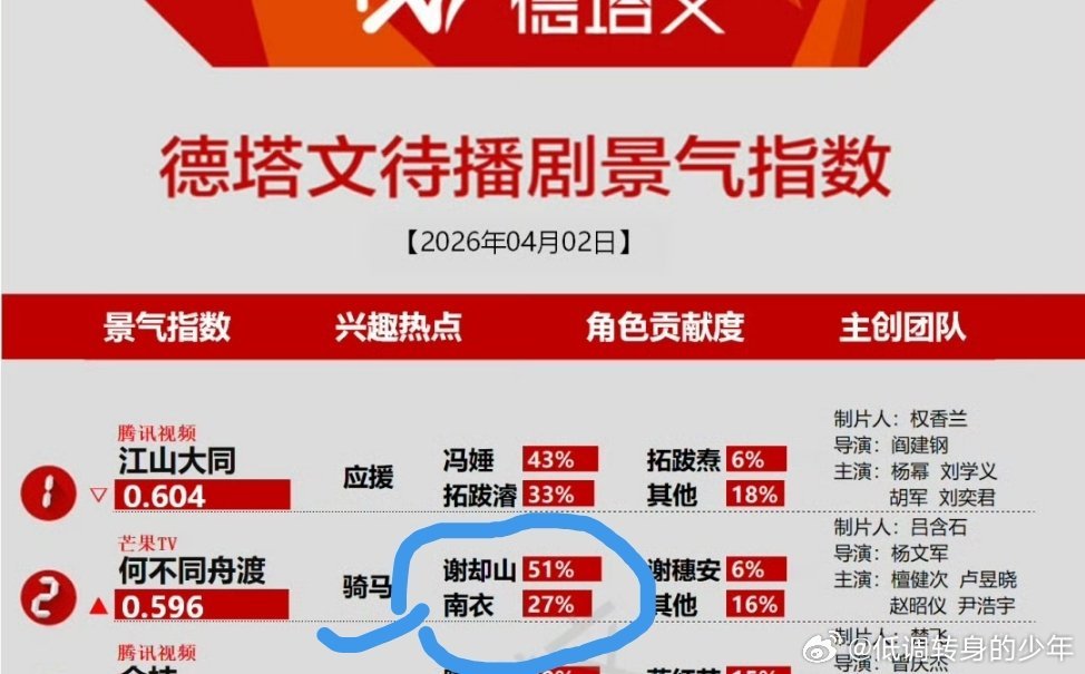 4.2德塔文待播剧景气指数榜檀健次《何不同舟渡 》上榜TOP2谢却山个人角色占比51%,兴趣热点~骑马!谢却山骑马路透好出圈期待 何不同舟渡正片!