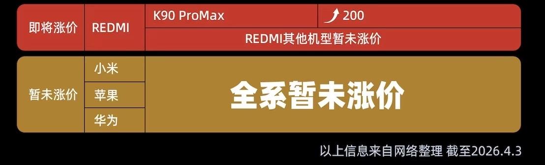 内存成本大幅上涨,小米也有点吃不消了,小米涨价也要来了,严格来说就1款,就是K90 Pro Max ,Turbo5系列是恢复原价 价格涨幅方面,对比其他品牌涨价500,甚至1000以上,K90 Pro Max只涨200,还算很有诚意,性价比依旧是在同档位出色,有换机需求的提前买,还有7天,不需要再等618了,早买早享受,晚买会涨价[吃瓜群众]