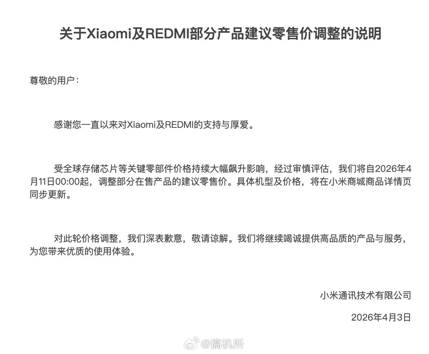 小米调价小米也因为内存原因涨价了,不过涨价幅度应该是各大厂商中最低的