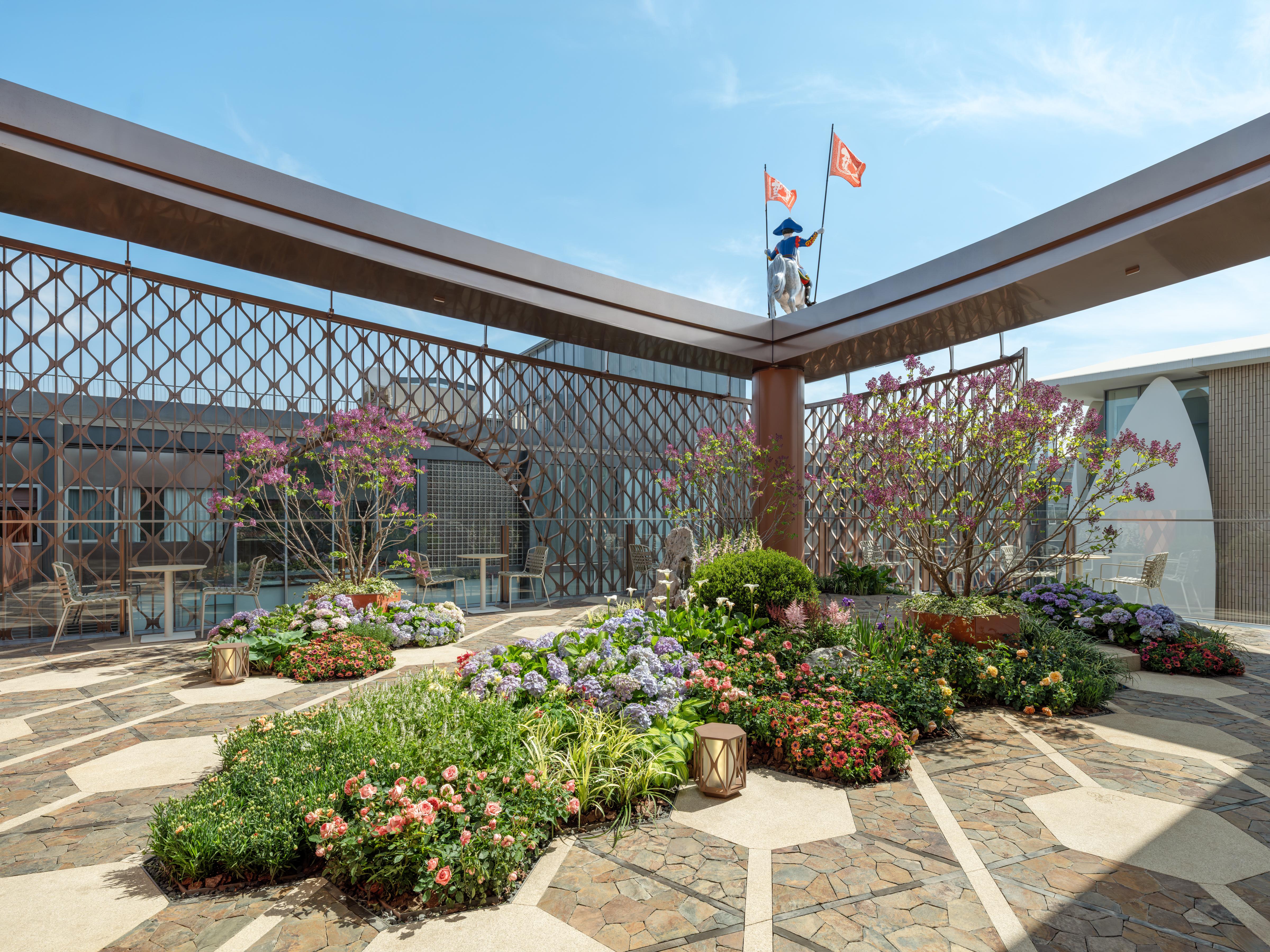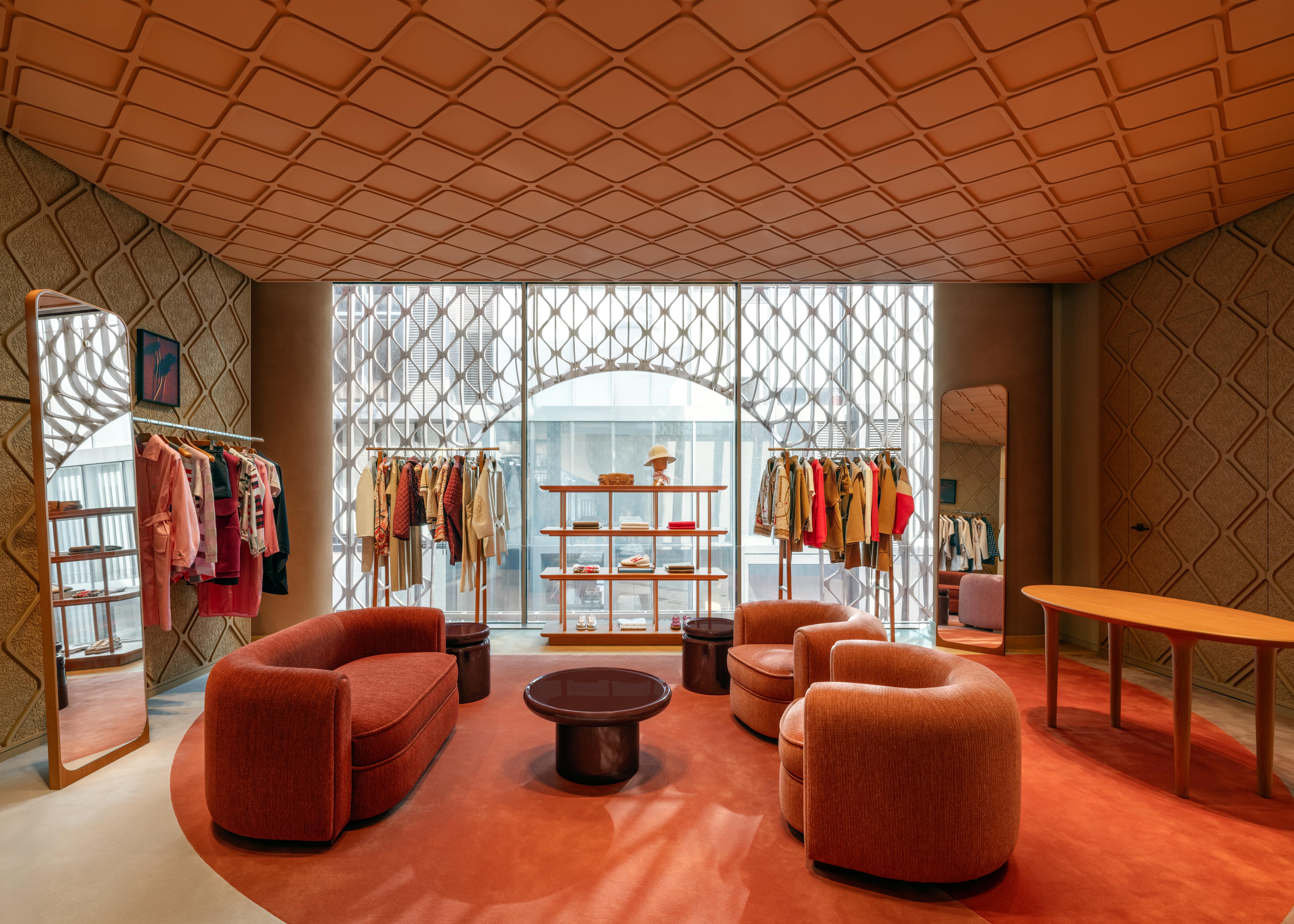 游园赏物:爱马仕北京新店今日开幕。爱马仕北京三里屯专卖店今天正式揭幕。这座占地1961平方米的“宅邸”,被一层玫瑰粉与铜色交织的网状结构轻柔包裹,巧妙地将紫禁城的色彩、游园的秩序与古典的图腾,无缝织入法式的优雅匠心之中。它并不急于“看起来像中国”,而是从精神内核进入,在结构与材料之中,建立一种与这座城市有关的表达。