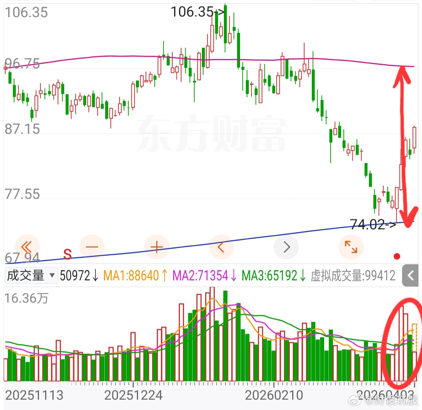 提前计划74元附近抄底的股,本次回踩非常精准,超跌配合年报业绩高增,成交量放大,机构买入。