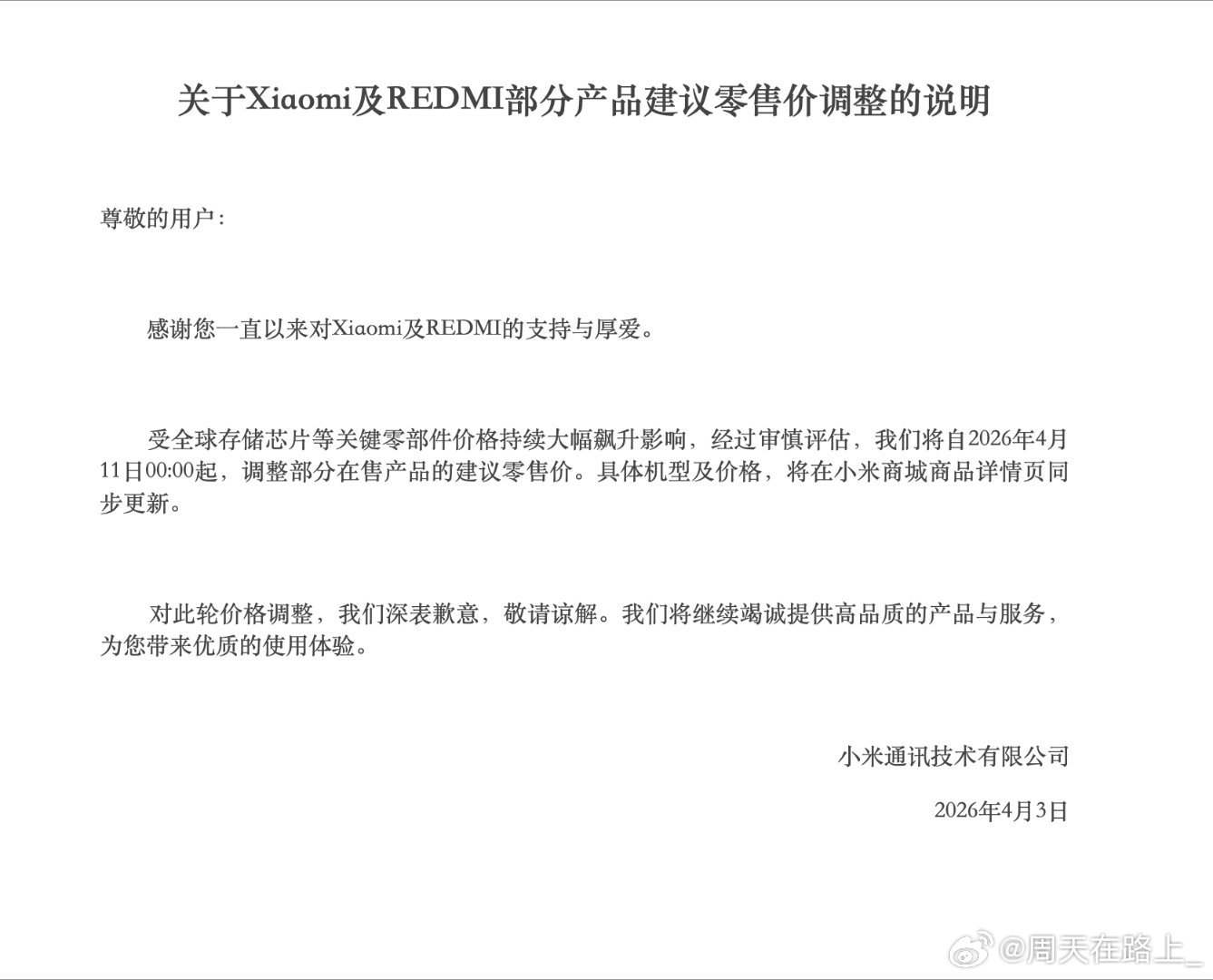 我当然知道很多人会张口就来怎么内存已经“暴跌”了你小米怎么才开始涨价,我们就不说这个所谓暴跌是和黄金一样几百块到上千然后小跌几十几百最后还是上千这么个“暴跌”,你就不能看看小米几乎是以一个最无损消费者的形态出了这样一个策略么?