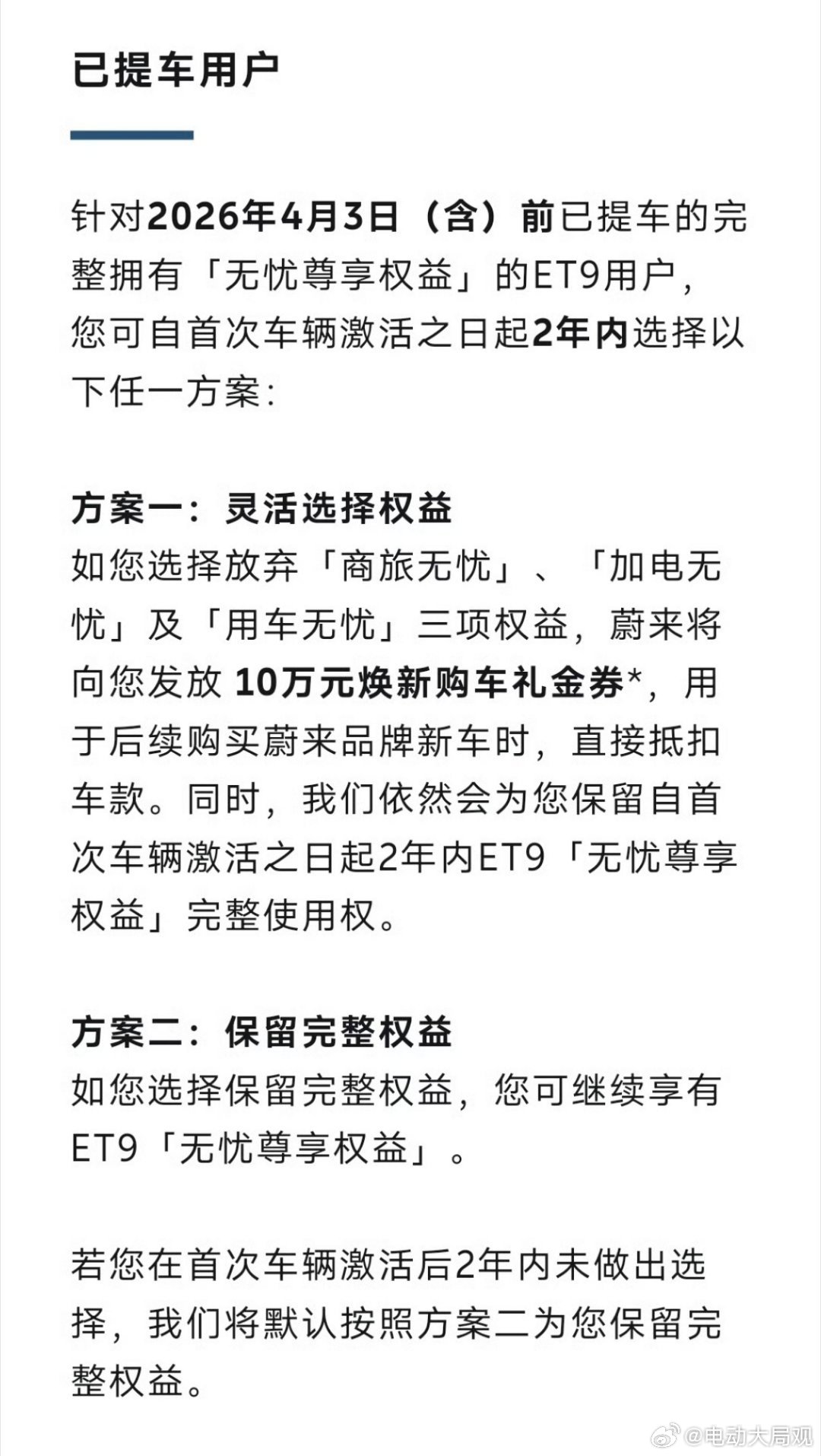 省流版:ET9车主购买蔚来ES9及其他车型,可选择立减10万~
