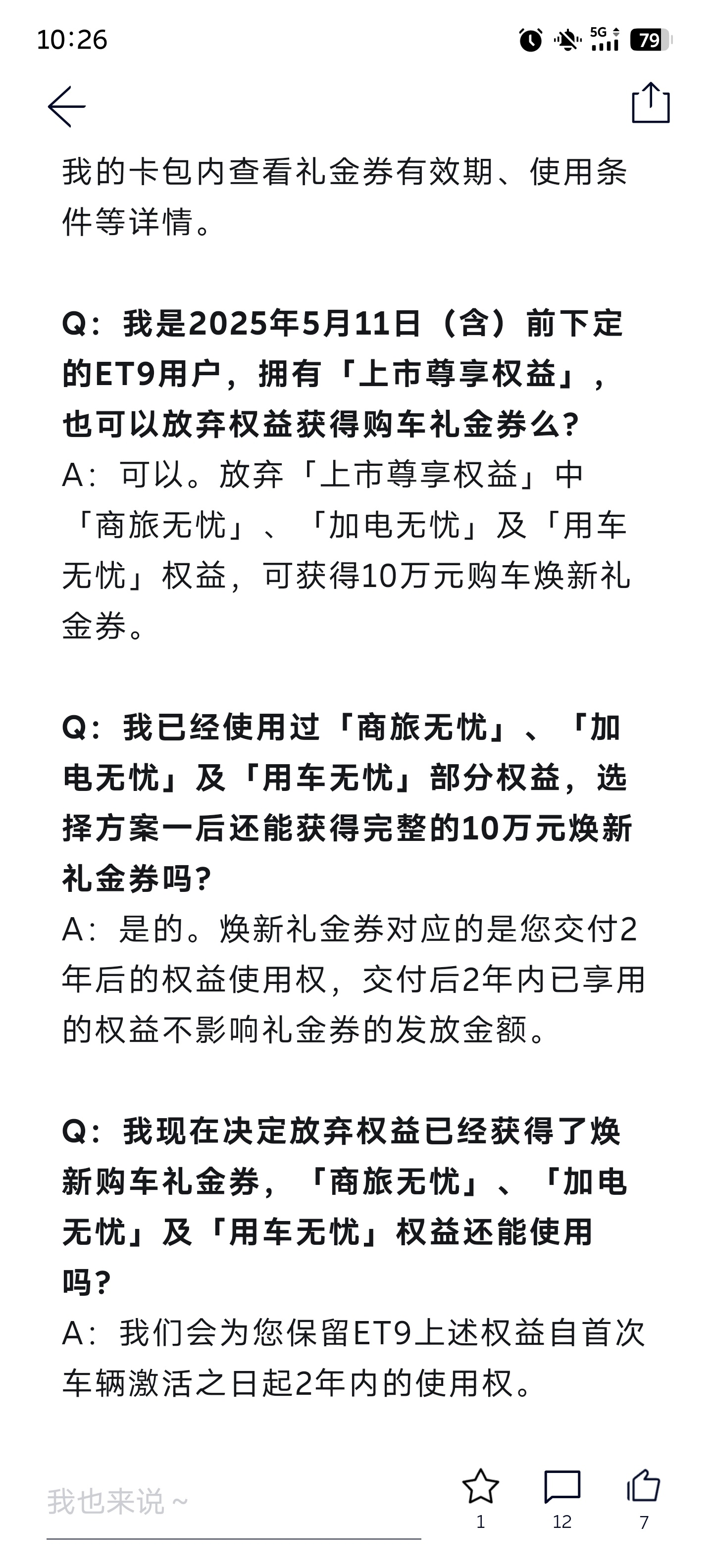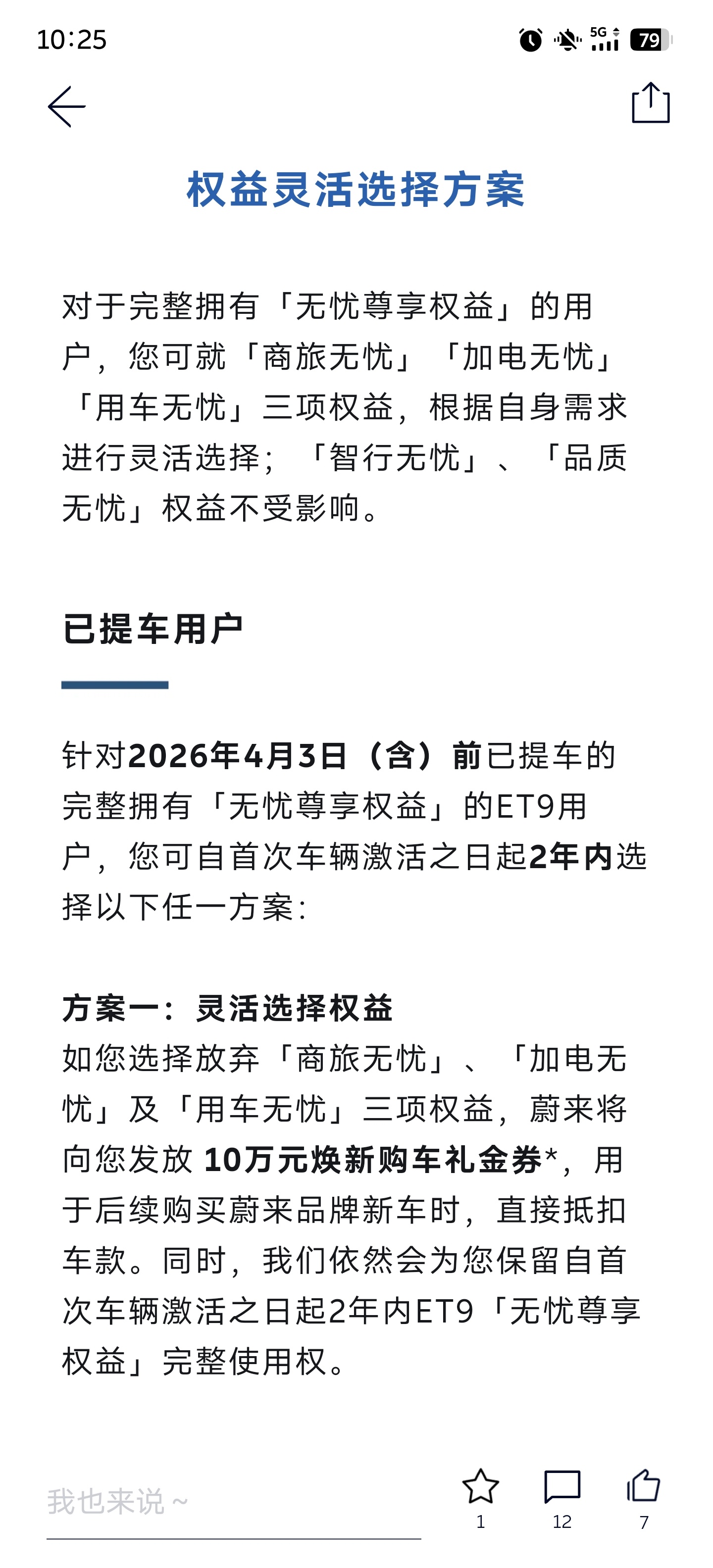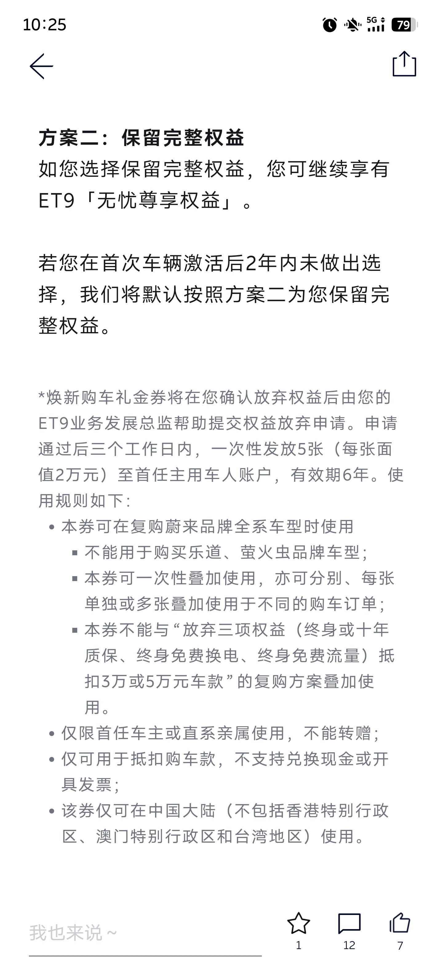 变天了变天了,车卖了车主还能保留一年的用车权益!?蔚来给ET9出了个重大政策,之前没有透漏一丝风声。ET9老车主,放弃权益给10w代金券可以买ES9了,权益用过也无所谓,一样给。新车主,可以主动放弃权益,车价减10w。甚至是你车已经卖了,它也给你这个礼券。蔚来要发起二次猛攻了,你怎么看?蔚来大v聊车
