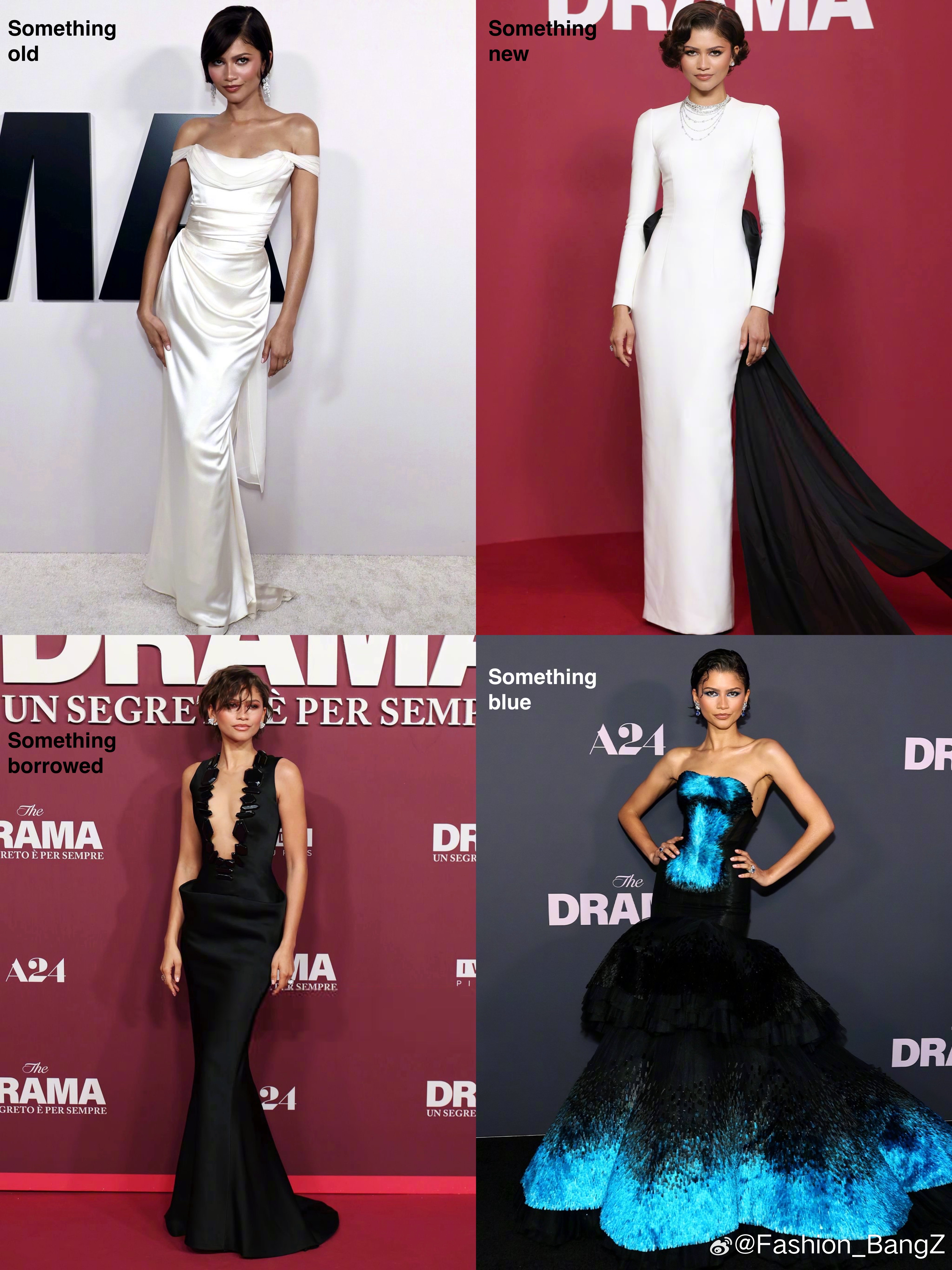 “Something Old”:洛杉矶首映,Zendaya 的礼服来自 Vivienne Westwood,她2015年走奥斯卡红毯时就曾穿过。有「回望来时路」的感觉。