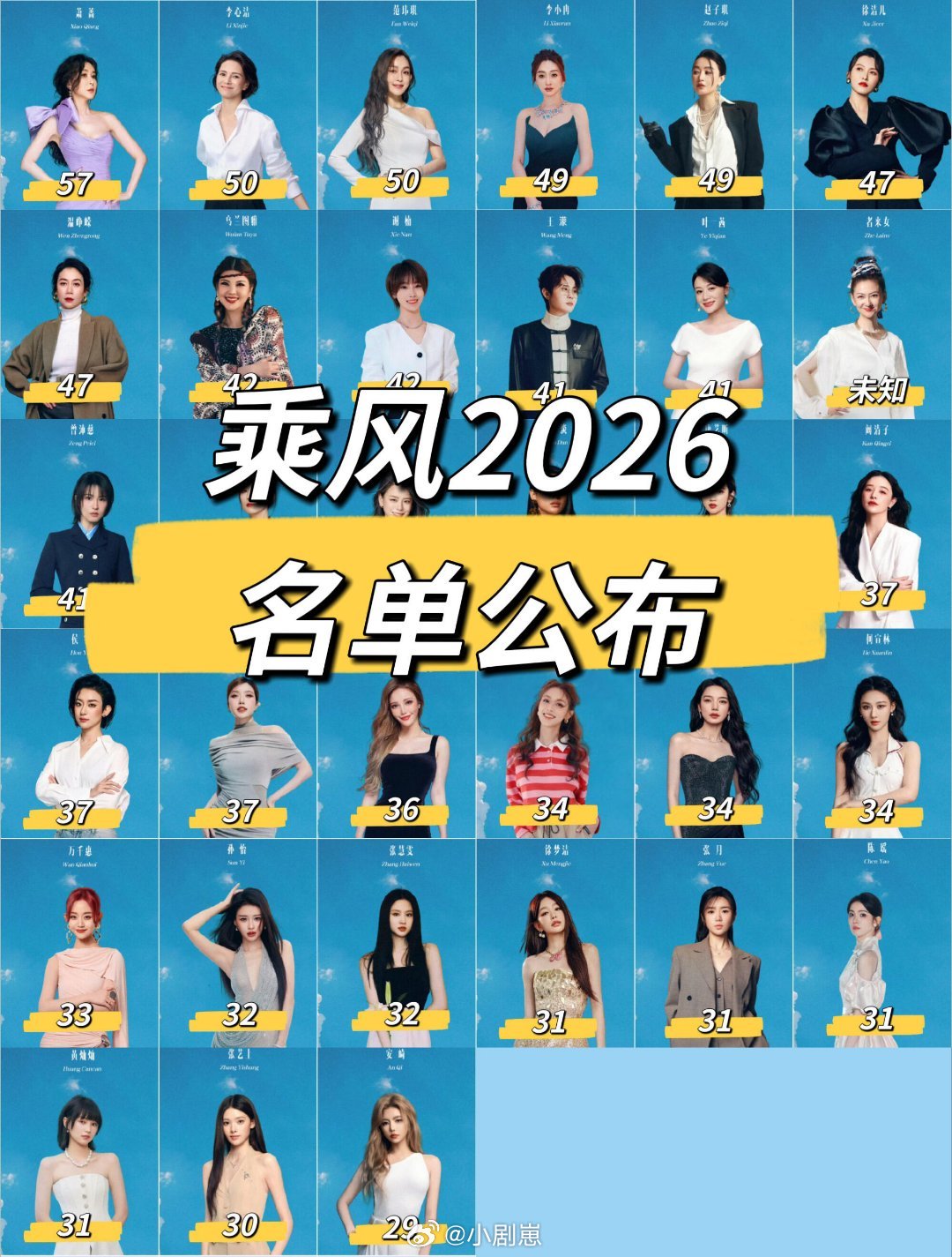 乘风破浪的姐姐浪姐7更新日历!乘风2026(浪姐7)33位姐姐已经集结,最年长姐