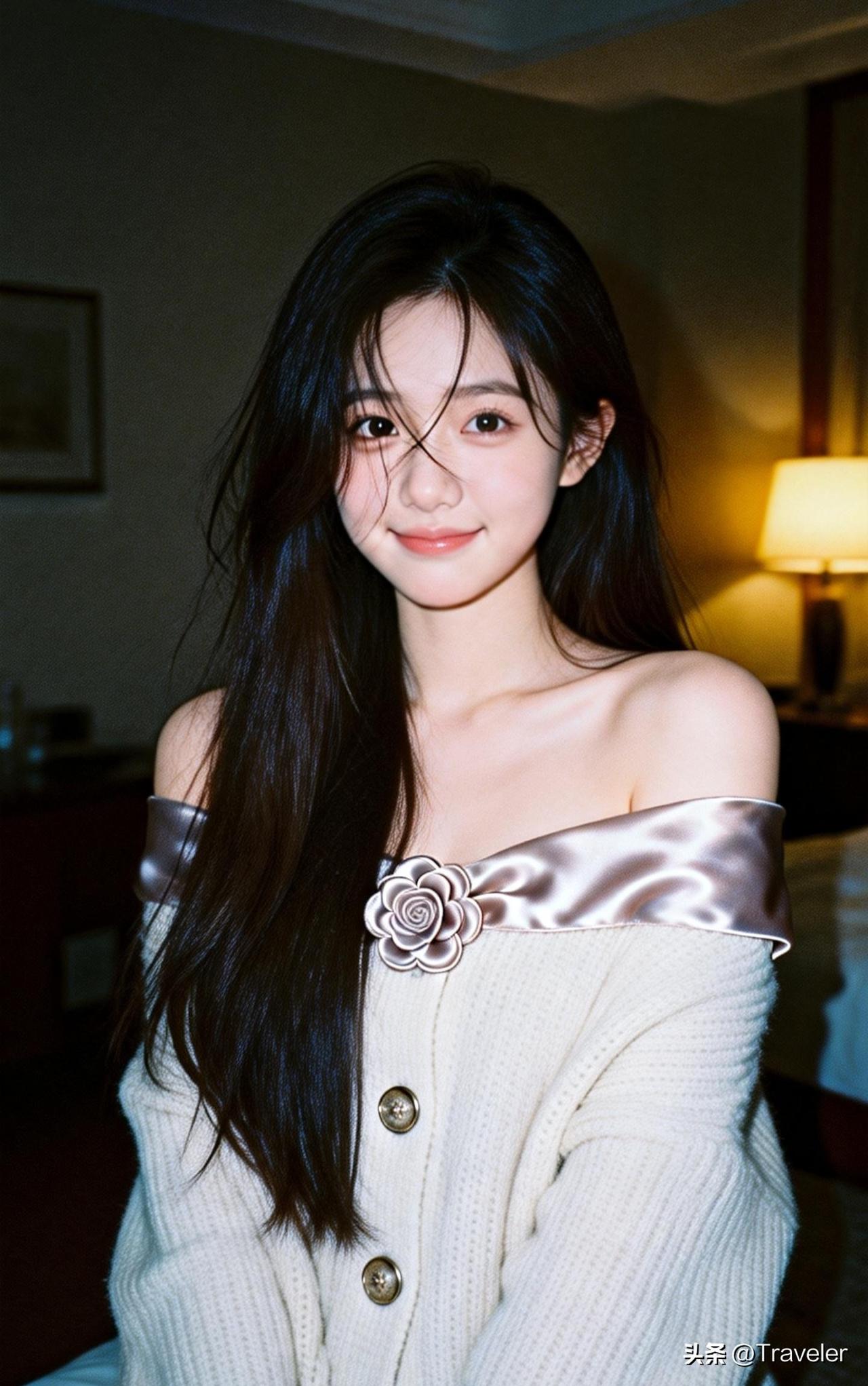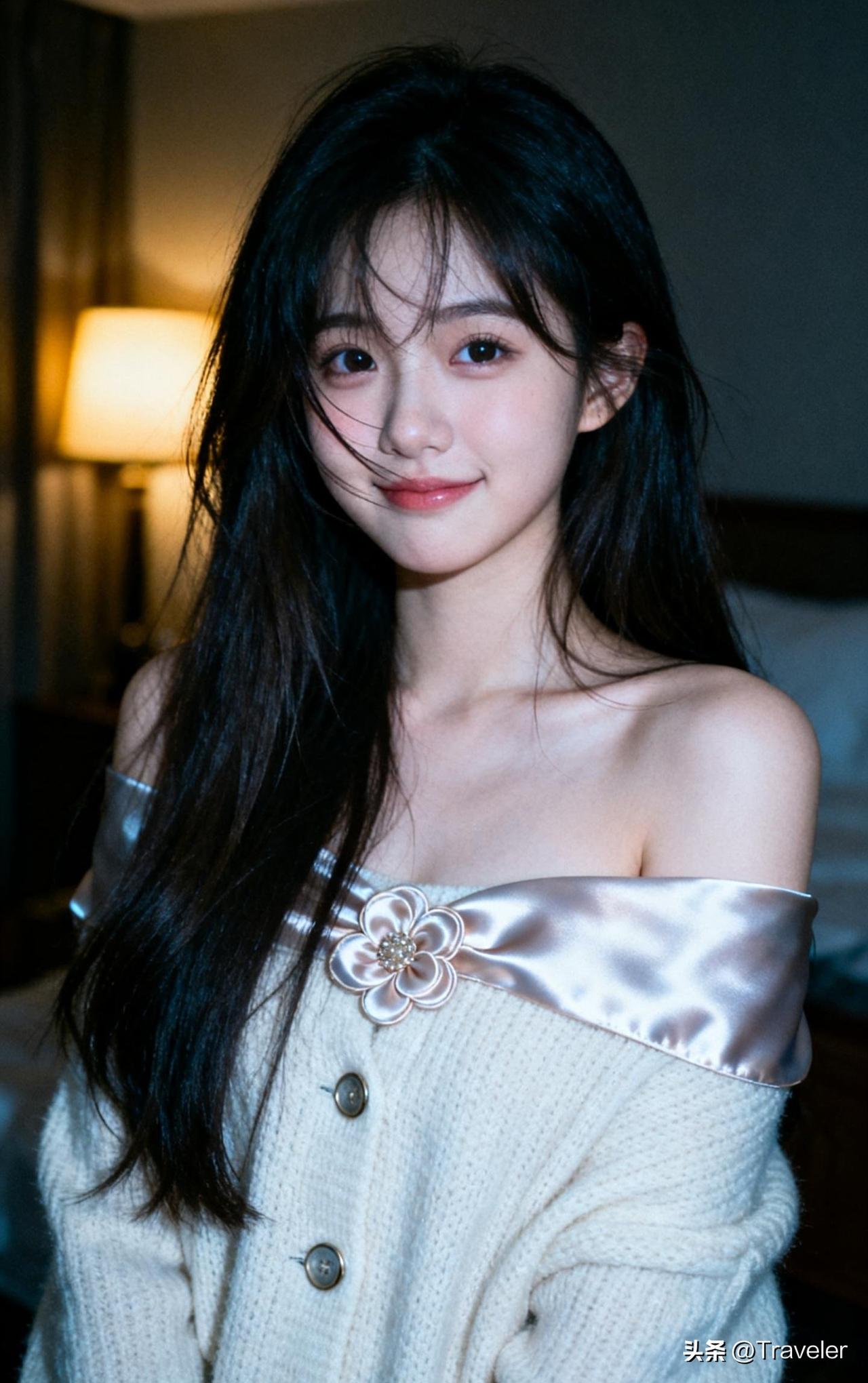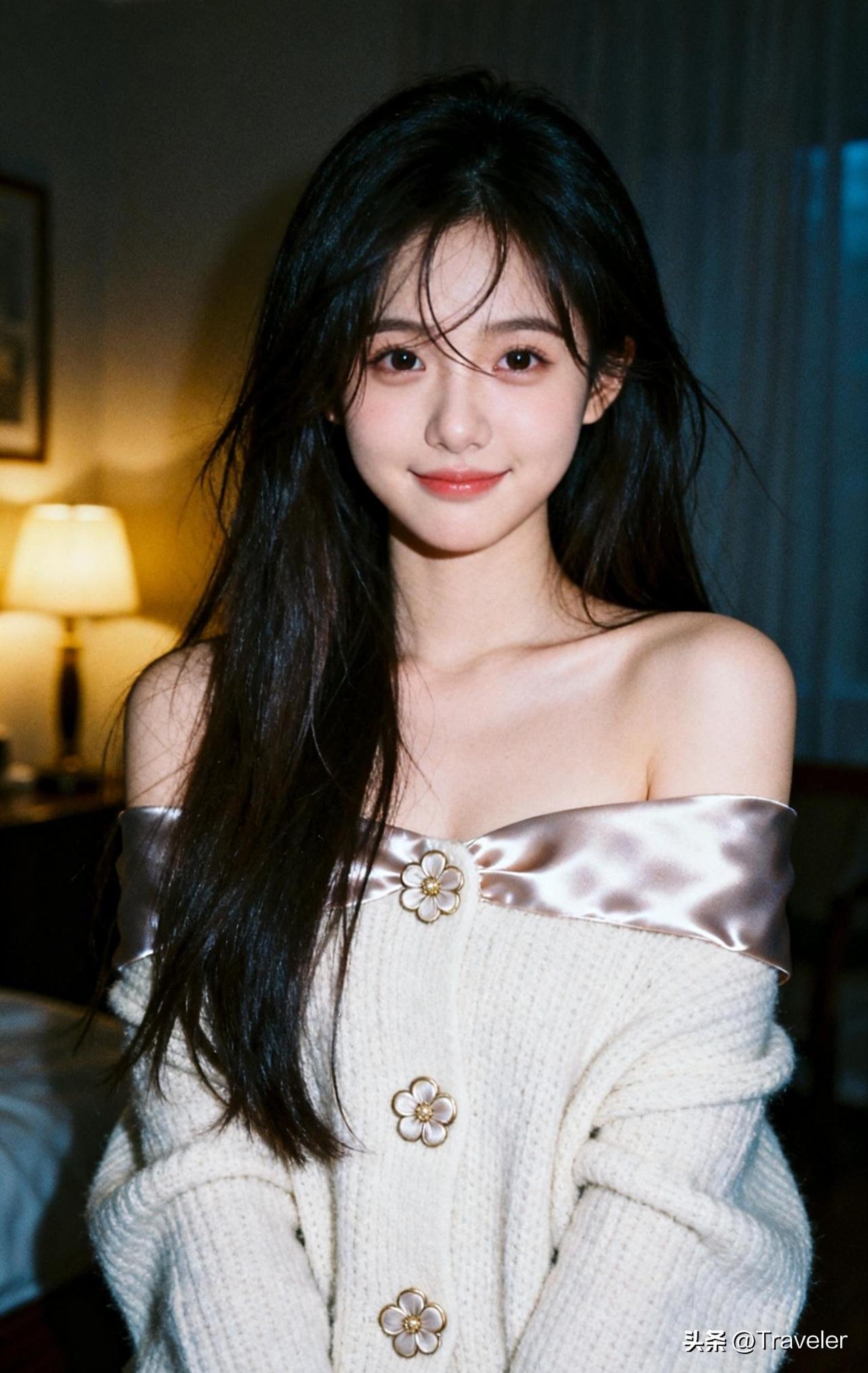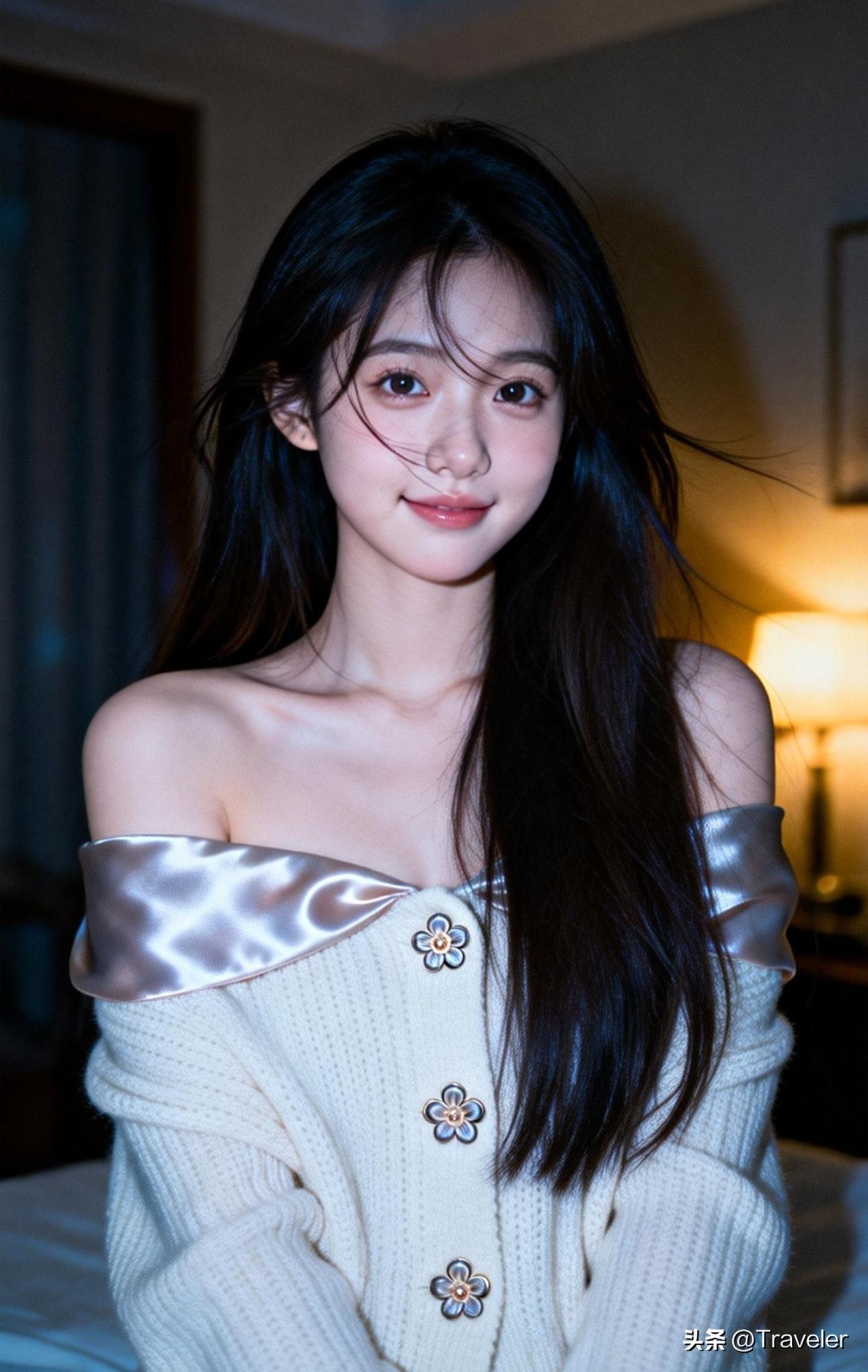 夜晚的温柔时光,静谧的氛围中,她沉思的目光仿佛在诉说着什么。