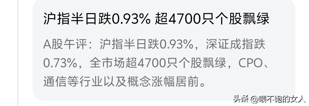 说实话,每天中午躺在床上休息一下,看看这快讯,经常看到股市的信息,我真是为那些股民揪了一把心。今天又超过4700只股票下跌,虽然我不炒股,但是我看新闻说现在开户的还很多,既然经常出现这么多只股下跌,那么为什么还有那么多人排队开户呢?到底是赚到钱,还是赚不到钱?我真的纳闷死了。希望你们赚钱的股民谈谈最近股市的体会和看法,到底赚到钱了没有? 希望明天中午这个时候我再看股市信息的话,能有4700只股上涨。我当然希望股民能够发财,能够沾到上市公司的光。