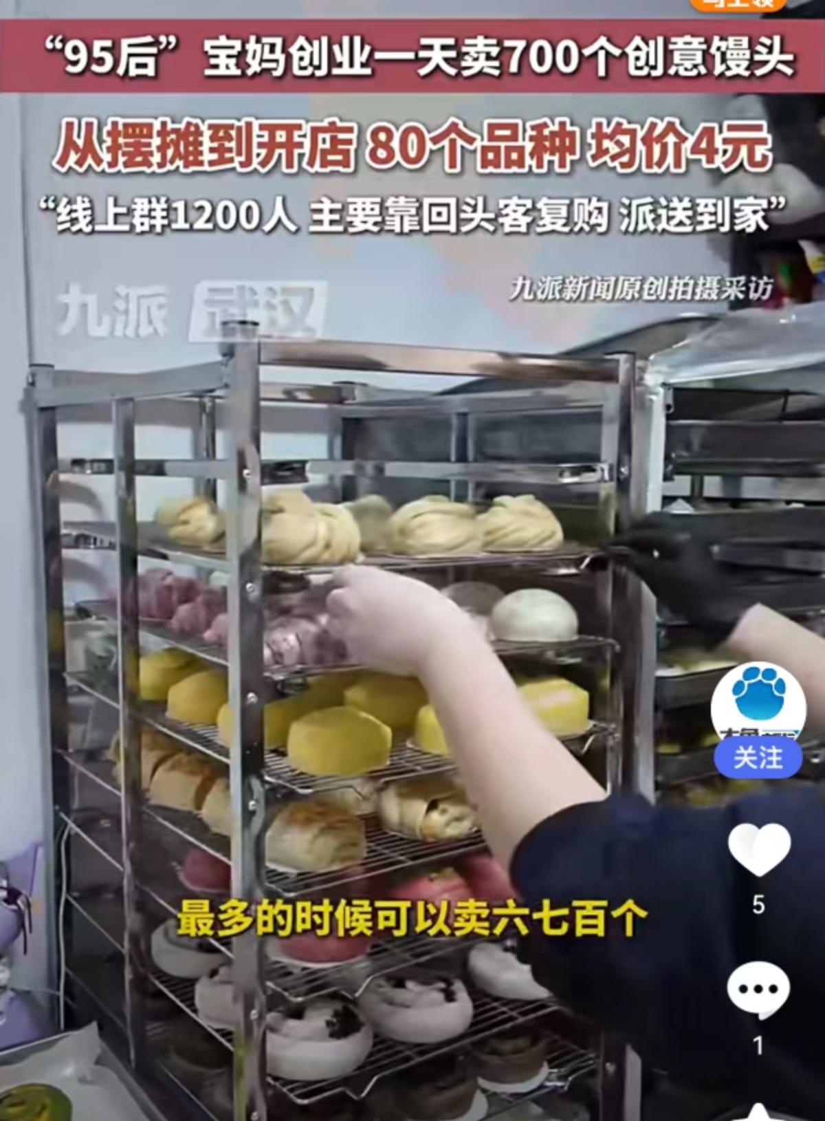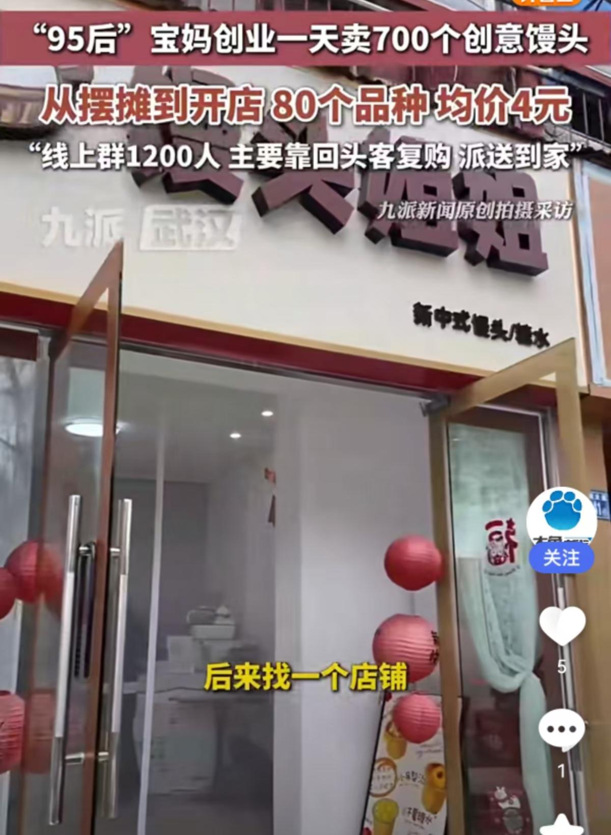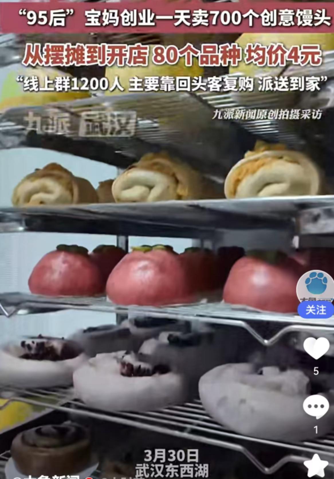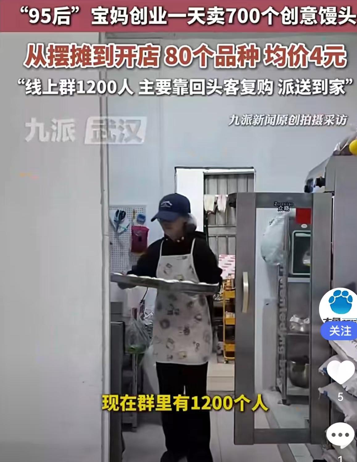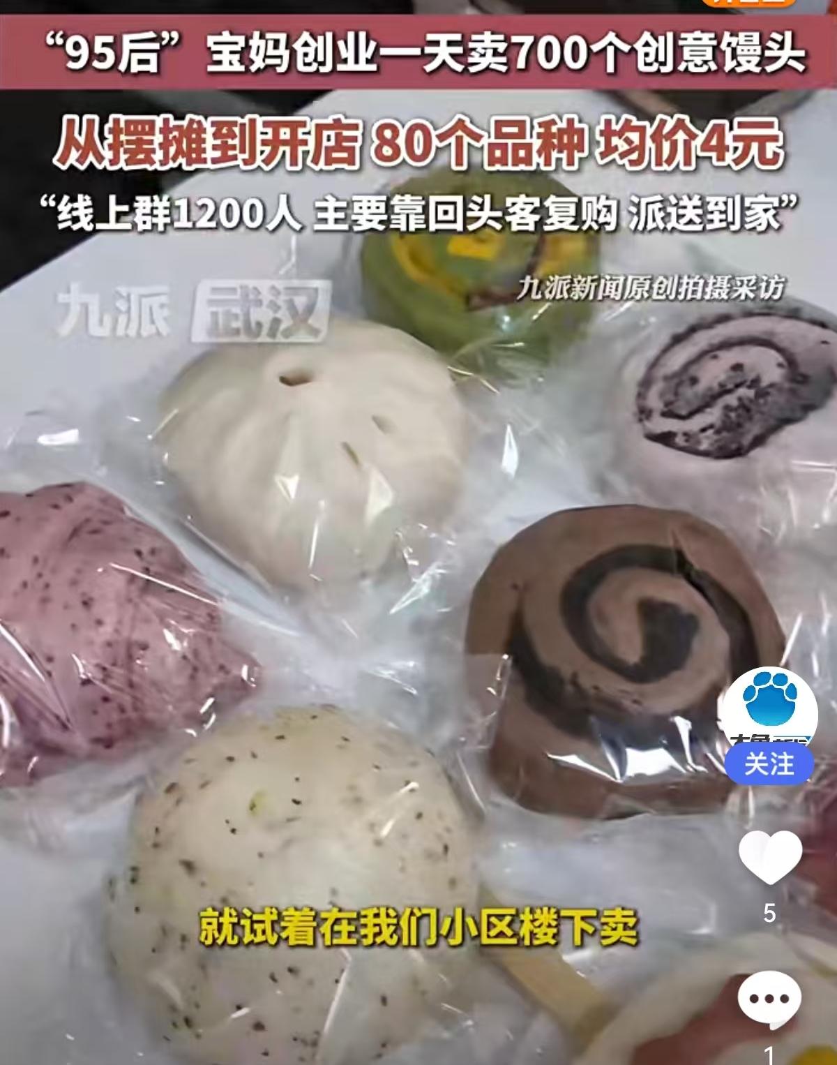一天卖出700个!95后宝妈靠“馒头生意”逆袭,均价4元背后的致富经 提到创业,很多人脑海里浮现的是高大上的写字楼、复杂的项目书,但一位“95后”宝妈却另辟蹊径,把目光投向了最接地气的面食行当。没有豪言壮语,只有实实在在的烟火气,她靠着一手做馒头的绝活,硬是把不起眼的馒头做成了爆款生意,一天能卖出去700个。 从最初风里雨里摆地摊,到如今拥有自己的实体店面,这位年轻宝妈走出了一条扎实的进阶之路。走进她的店里,你会发现这里绝不是传统馒头店能比的。整整80个品种!这数字听着都让人咋舌。从造型别致的创意馒头,到口感丰富的花样面点,琳琅满目地摆在货架上,彻底打破了大家对白面馒头的刻板印象。 价格方面更是亲民得让人无法拒绝,均价只要4元。在如今奶茶动辄二三十的消费环境下,4元钱就能买到一个用料扎实、造型精美的创意面点,这对于家长和孩子来说,吸引力简直太大了。 最有意思的是她的经营模式,完全跳出了传统“坐等客来”的套路。虽然没有具体透露店铺位置,但从运营数据来看,她把私域流量玩得明明白白。目前她的线上微信群人数已经达到了1200人。这可不是一堆“僵尸粉”,而是实打实的精准客户。 她主要靠回头客复购,配合派送服务,直接解决了顾客“想吃但不想跑”的痛点。社群里一声吆喝,订单纷至沓来,既锁定了客流,又保证了每天的销量稳定。这种“社群预订+线下自提/配送”的模式,极大地降低了库存压力,让小本生意也能轻资产运营。 这位宝妈的成功,给当下想要创业的年轻人上了一课:创业不分贵贱,生意不分大小。看似红海的传统面食市场,只要肯在产品创新上下功夫,肯在服务细节上做文章,一样能挖掘出巨大的蓝海。把馒头做成“艺术品”,把微信群做成“生意圈”,这就是新时代创业者的智慧。比起那些虚无缥缈的风口,这种看得见、摸得着的民生生意,或许才更有生命力。 以上内容仅供参考和借鉴