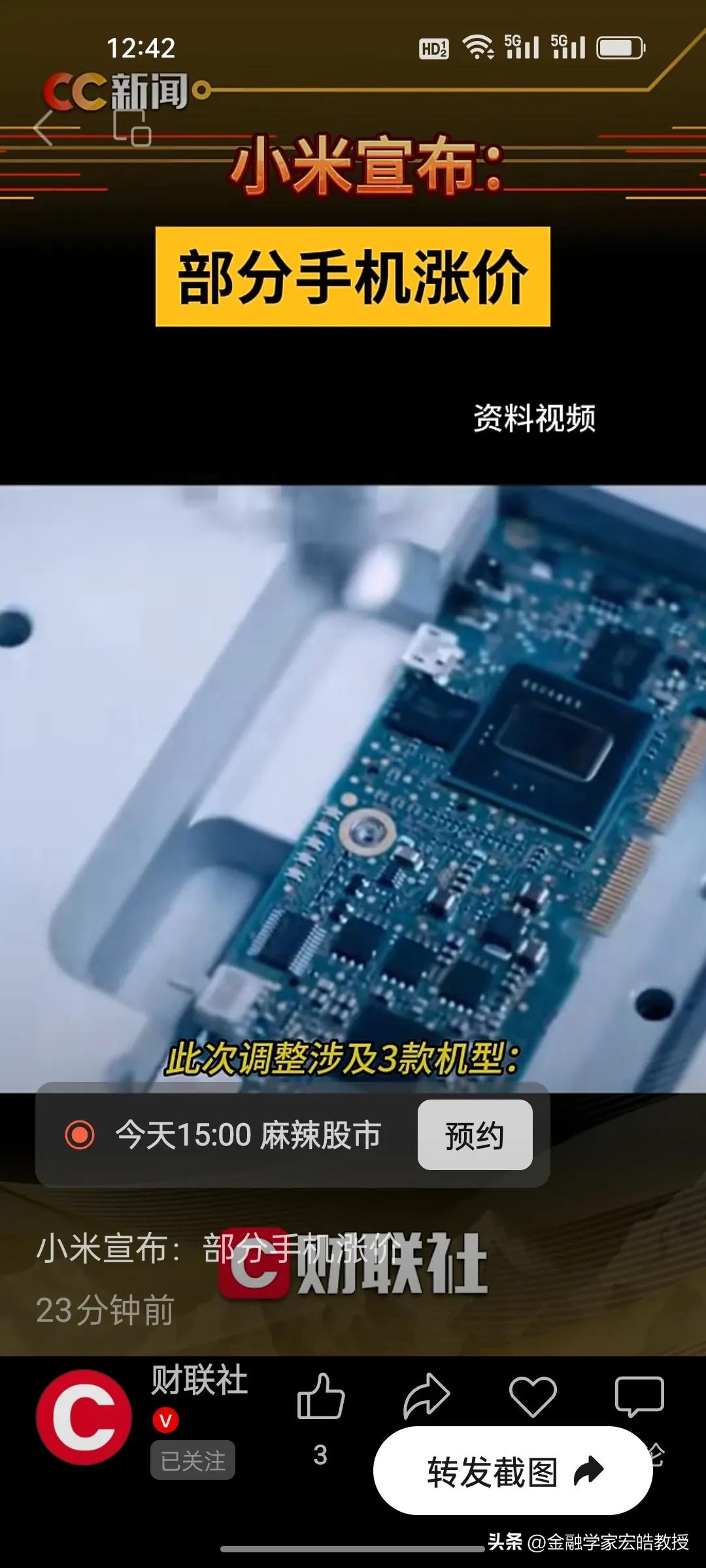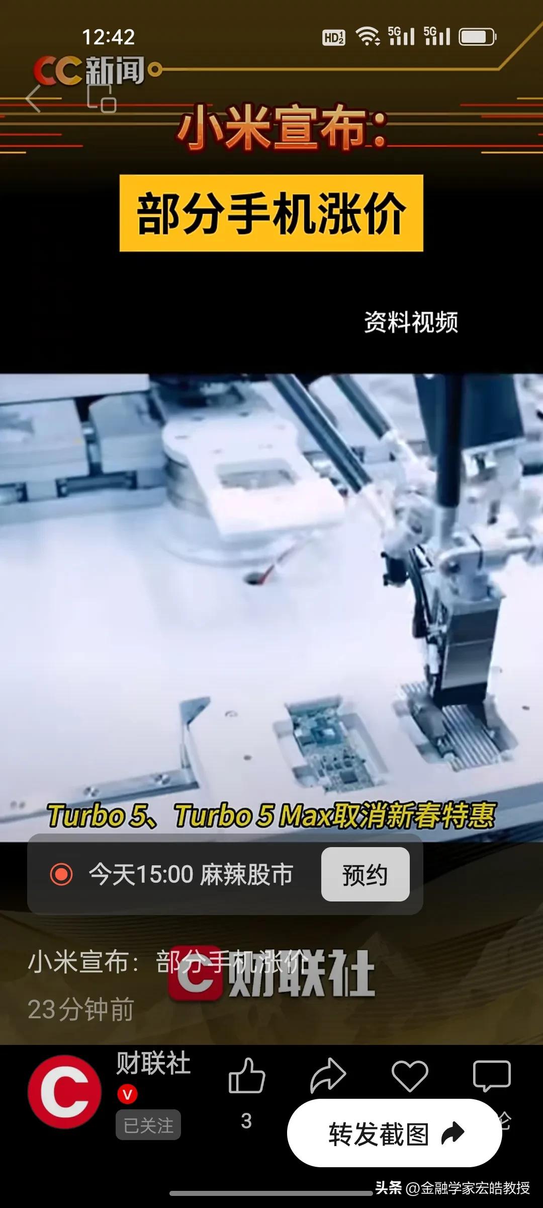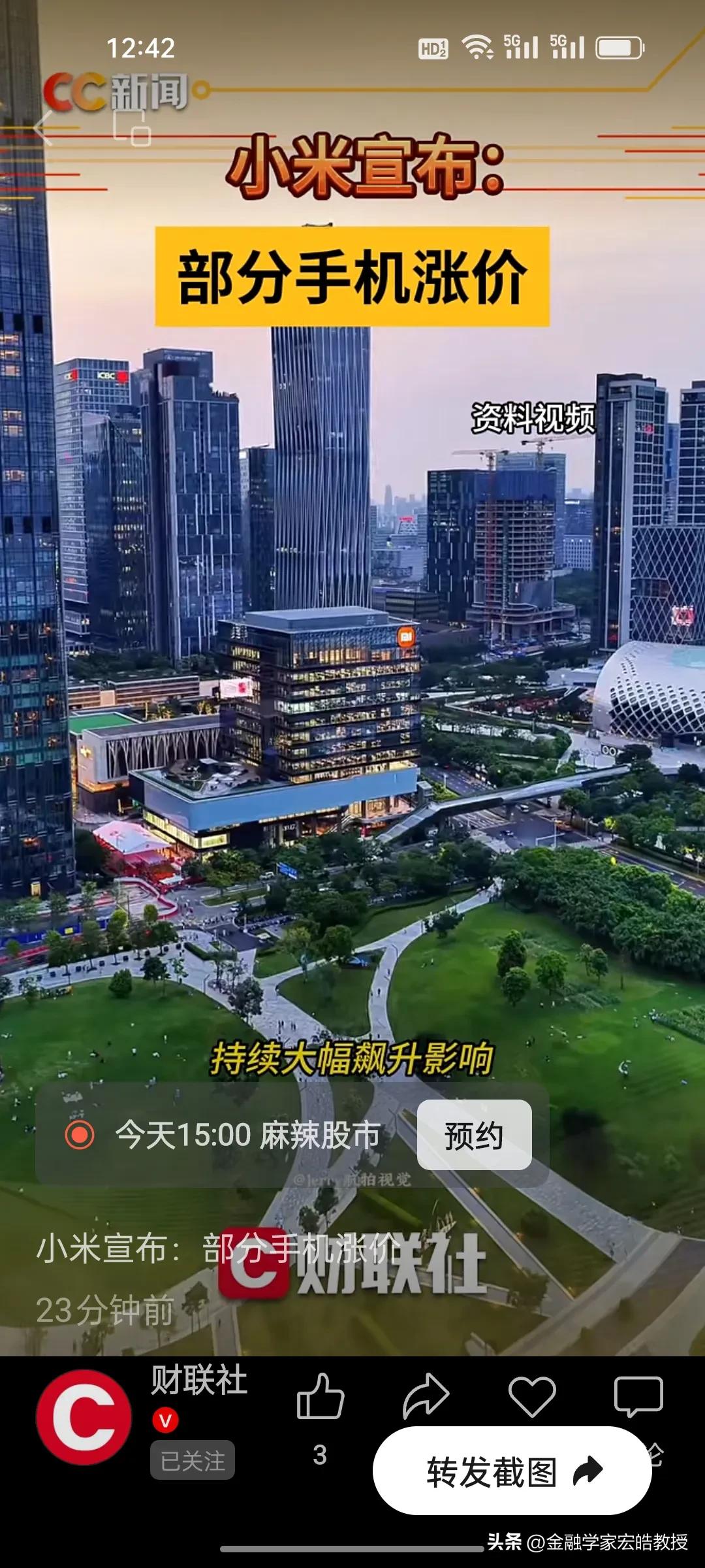 刚刚,小米官宣手机涨价!手机、家电集体涨价潮来袭! 谁能想到,最能扛的小米手机竟然也要涨价了!今天,小米正式官宣:受全球存储芯片等关键零部件价格大幅飙升影响,自4月11日0点起,部分在售手机上调建议零售价。 不过,这次涨价倒是对小米高端化转型迎来契机。涨价为品牌升级提供了缓冲,小米借此提升产品溢价,摆脱“性价比”标签,向高端市场突围,提升品牌长期价值。 不止手机,家电圈早已掀起涨价潮:美的、格力、海尔等头部品牌先后上调空调、冰箱等大家电价格,部分小家电涨幅超10%;生活用品中,卫生纸巾、洗护用品也因原材料、物流成本上涨提价。 核心原因就是上游核心元器件、大宗商品价格持续走高,叠加供应链成本压力。短期看,存储芯片、芯片等核心物料价格仍在高位,涨价潮至少会持续到2026年下半年,直到供应链供需平衡才会缓解。 现在入手刚需产品,真的要抓紧窗口期了!