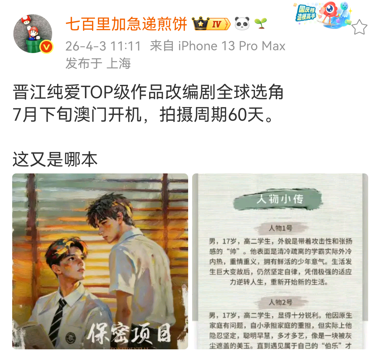 啊?撒野不是拍过了吗?全球选角,让我看看谁演顾飞