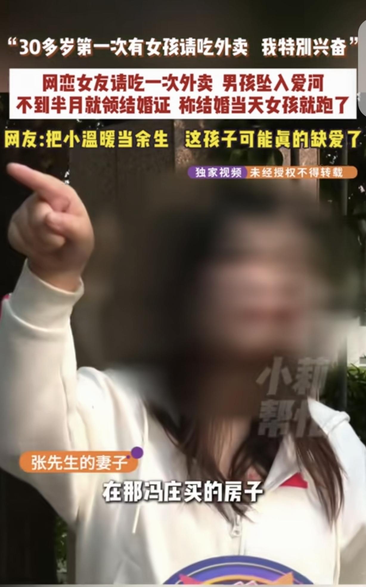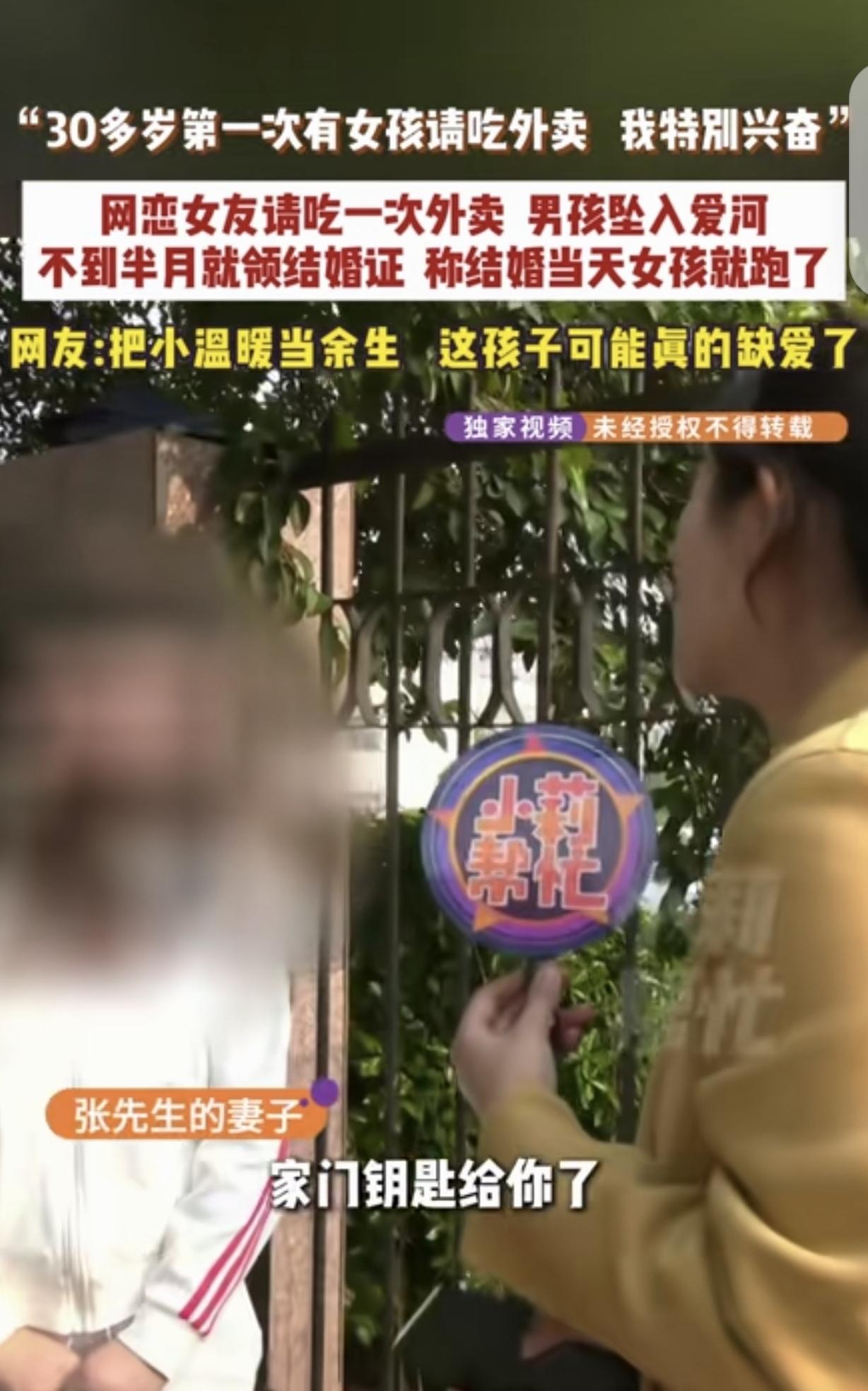河南商丘,一30多岁男子,在网上认识一女子,当天见面,女子请他吃了顿外卖,直接把男子感动哭了,他30多岁了,第一次有女孩请吃外卖,吃完外卖15天,2人就领证结婚,他给了18.8万彩礼,1.1万见面礼,6万三金,可万万没想到,结婚当天下午,女子就跑路了。结局真是小说都不敢这么写。 张先生30好几,一直没遇上合适的对象,父母催婚,亲戚见面就问他感情的事,他心里也着急。 张先生平时圈子窄,就想着在网上碰碰运气。 没想到还真聊上了一个投缘的女子,2025年1月31日,他在网上认识一女子,两人没聊几句,就约了见面。 见面当天,女子挺大方,主动请他吃了顿外卖。 就这么一顿外卖,把张先生感动得差点哭了,他兴奋不已,他活了30多年,还是第一次有女孩主动请他吃饭,他觉得自己终于遇到了懂他的人。 从那之后,两人的感情像坐火箭一样升温。只过了15天,张先生就迫不及待地和女子领了结婚证。 为了表示诚意,张先生按照当地习俗,给了女方18.8万彩礼,1.1万见面礼,还花6万块钱买了三金。 本以为接下来就能过上安稳日子,可结婚当天下午,妻子却突然不见了。 一开始张先生还以为妻子只是出去买东西,可等了半天也不见人回来,打电话也没人接,发消息也不回。 张先生慌了,这才意识到不对劲,四处找人却毫无音讯。无奈之下,他只能求助媒体帮忙。 在媒体的帮助下,张先生总算找到了妻子。可妻子的话却让他更懵了。 妻子说自己不是跑路,是去上班了,一直在做直播。 做什么直播,结婚当天都得脱下婚纱去上班呀?这显然是个借口。 妻子反咬一口,反过来指责张先生,说结婚后,张先生连新房子的钥匙都不给她,也一次都不联系她,她觉得这段婚姻根本没个家的样子。 妻子表示,只要张先生把家门钥匙给她,她就愿意回去过日子。 张先生听了心里咯噔一下,结婚当天就跑路的妻子,他还敢把家门钥匙给她吗?说不定什么时候,都可能把家搬空,然后自己人财两失。 如今妻子突然提出要钥匙,他心里犯嘀咕,不知道妻子到底是真心想过日子,还是另有目的。 周围的亲戚朋友听说了这事,都替张先生捏了把汗。说他太着急了,才认识15天就结婚,连对方的底细都没摸清。 女方可能就是冲着彩礼来的,现在拿了钱就想走。 张先生自己也后悔不已,当初就不该因为一顿外卖就冲昏了头,以为遇到了真爱,结果现在落得个鸡飞蛋打的下场。 现在张先生还在和妻子僵持着,他不知道该不该把钥匙给妻子,也不知道这段闪婚能不能维持下去。 结婚是一辈子的大事,可不能一时冲动,得好好了解清楚对方,不然很可能会像张先生一样,落得个哭笑不得的结局。 《最高人民法院关于适用〈中华人民共和国民法典〉婚姻家庭编的解释(一)》第5条规定,双方未办理结婚登记手续、已办理结婚登记手续但确未共同生活等情形,当事人请求返还彩礼的,法院应予支持。 张先生和妻子虽登记结婚,但婚后无实质共同生活,如果张先生能举证证明双方未共同居住、妻子存在恶意失联行为,可主张返还彩礼。 妻子以“没给钥匙”为由失联,不影响彩礼返还的认定。 如果妻子借婚姻名义骗取彩礼,还可能涉及诈骗罪,需承担刑事责任。 对此,你怎么看? 关注@运良说法 学法律知识不迷路