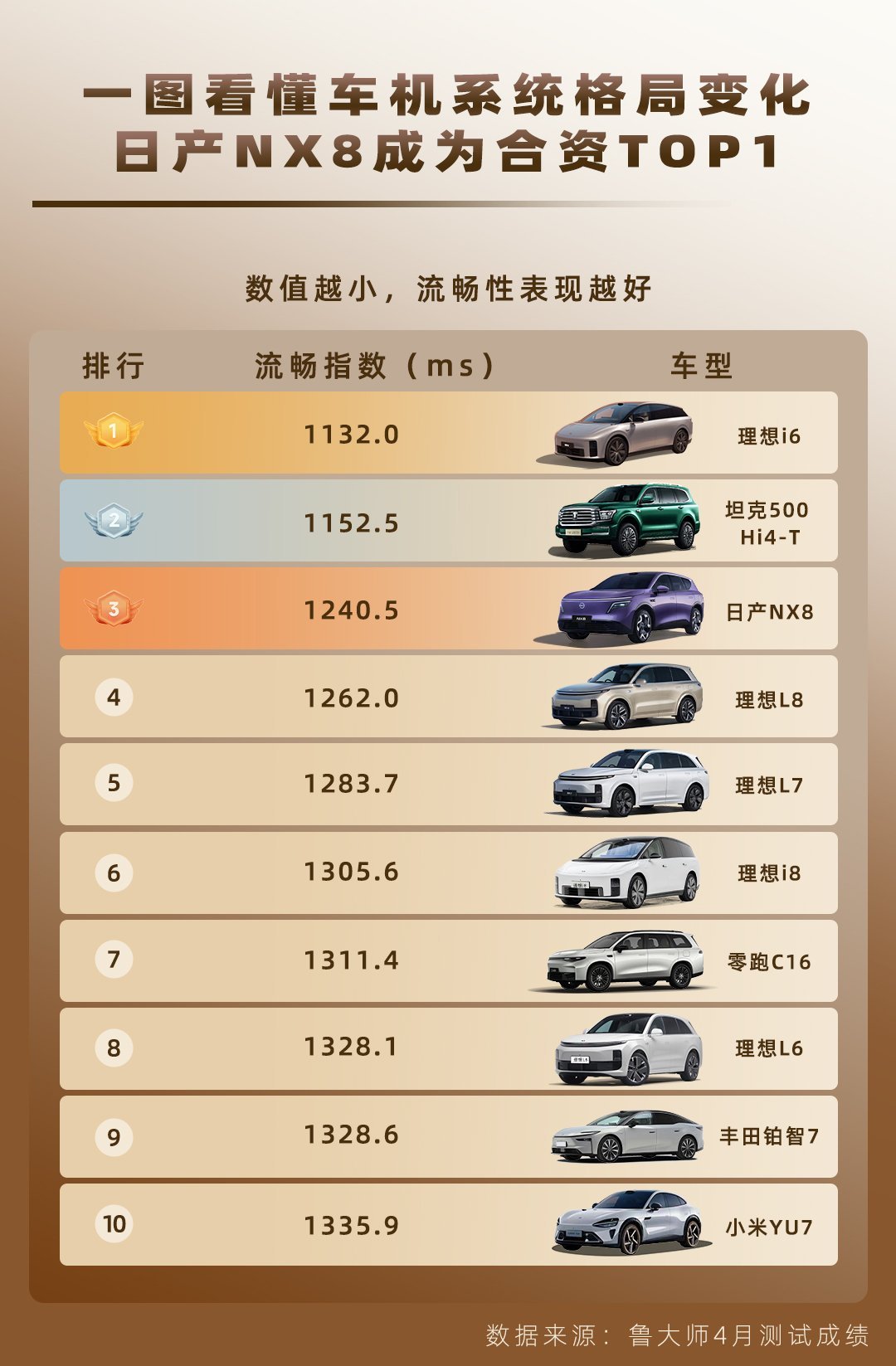 前几年大家对于合资车的中控车机的感受,无非就是屏幕小、卡顿、只能当收音机,都是一些很落后的印象。但这次东风日产NX8一举打破了我的刻板印象,它居然能在鲁大师车机跑分榜单中,东风日产NX8跻身总榜TOP3、拿下合资品牌第一。首先它的配置就不落伍,搭载高通8295P芯片,软件层面积极拥抱Agent,搭载讯飞星火+DeepSeek-R1双AI大模型,NISSAN OS 2.0支持四音区交互与全场景智能服务,让音响和互动配合着舒适的沙发!作为20万级大五座智慧舒享SUV,NX8的舒适和智能体验确实顶级!