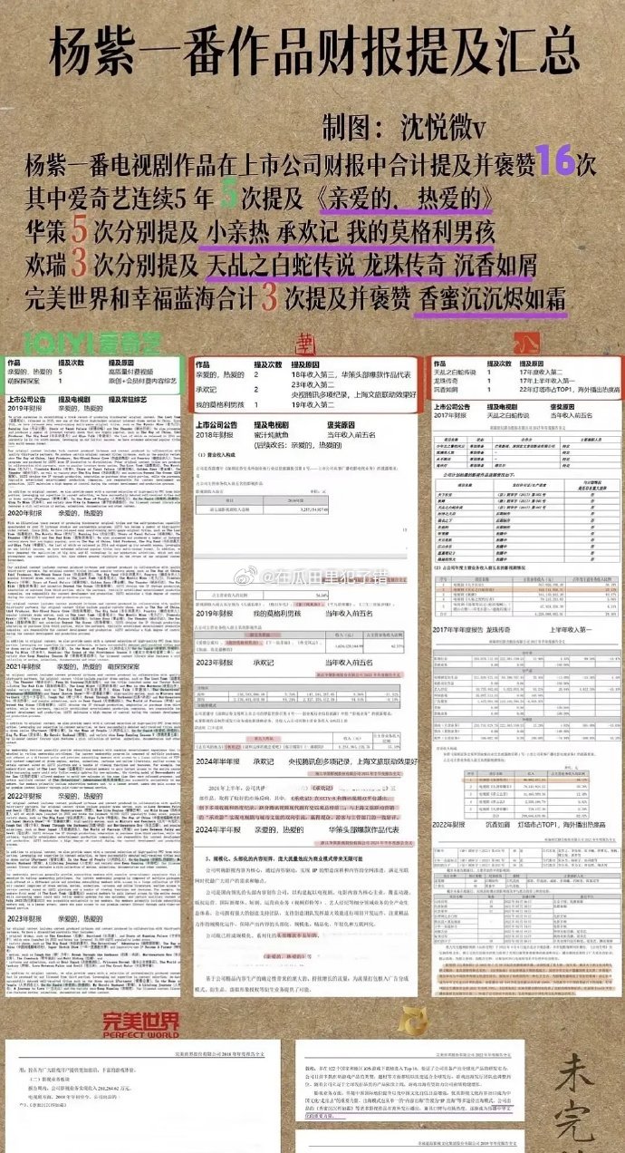杨紫一番作品财报相关汇总🈶