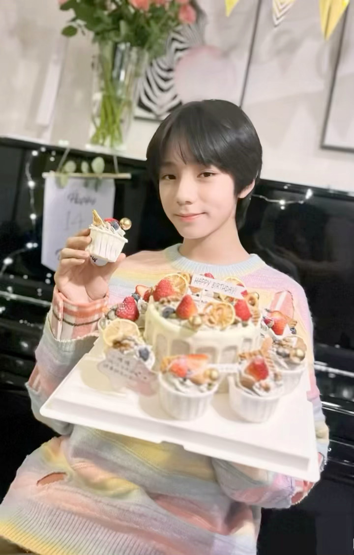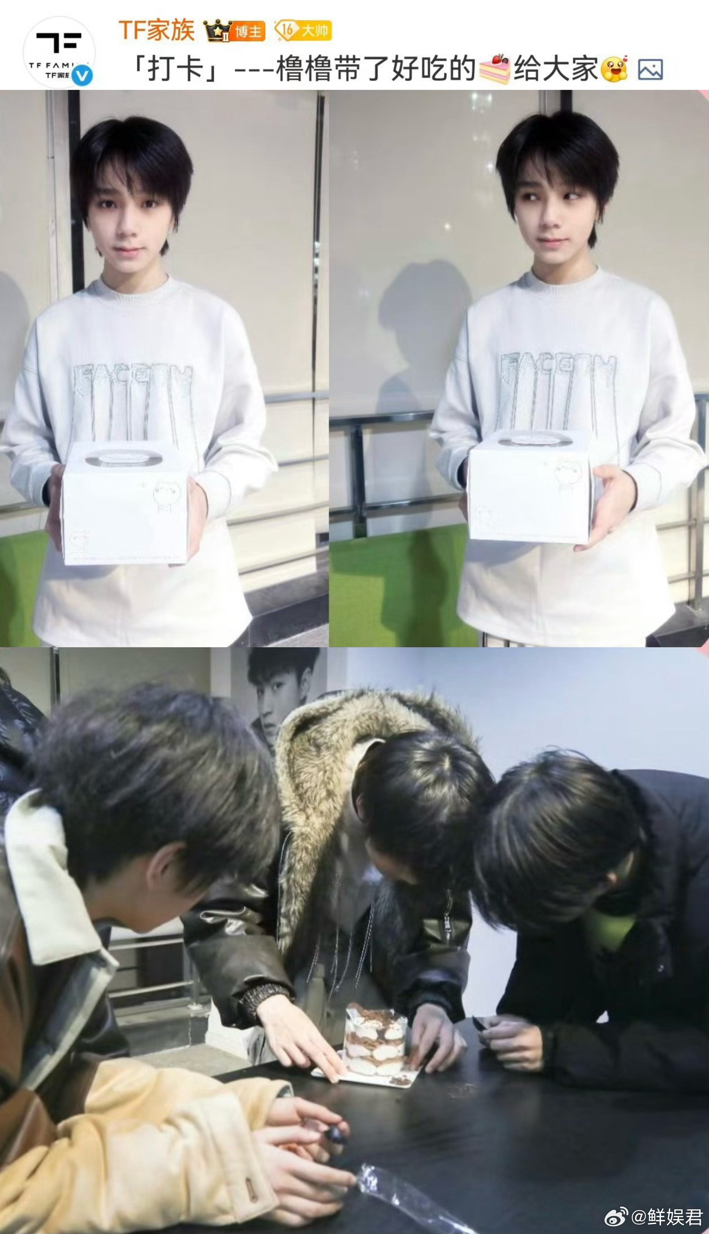王橹杰过15岁生日还不忘带蛋糕分给成都的同事,小小年纪就这么真诚温柔,懂得分享和感恩,细节里全是温柔与教养!今天份出妆依然帅气,期待王橹杰付彬言学长!王橹杰带生日蛋糕给成都的同事分享