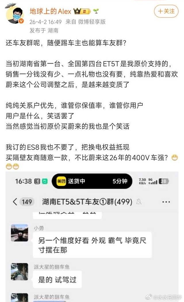 他们看你不爽,你惹了众怒,他们怎么处理你,是他们的事情,和蔚来官方无关