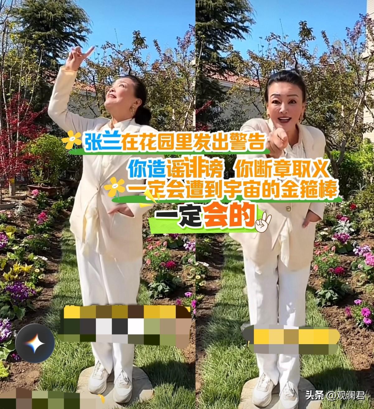 张兰再次深陷舆论风波,她发声谴责造谣诽谤的人没有好结果。 张兰着一袭干练的白色西装,站在花园里,谴责造谣中伤她的人。 “你喝茶,喝咖啡,你不能喝劳动者的血汗;你欺诈,欺骗,上天一定会报应你的;你吃饭,你吃菜,你吃什么也不能吃没有信用这碗饭;你造谣诽谤,你断章取义,你会遭到宇宙的金箍棒,一定会的,哈哈哈哈哈”
