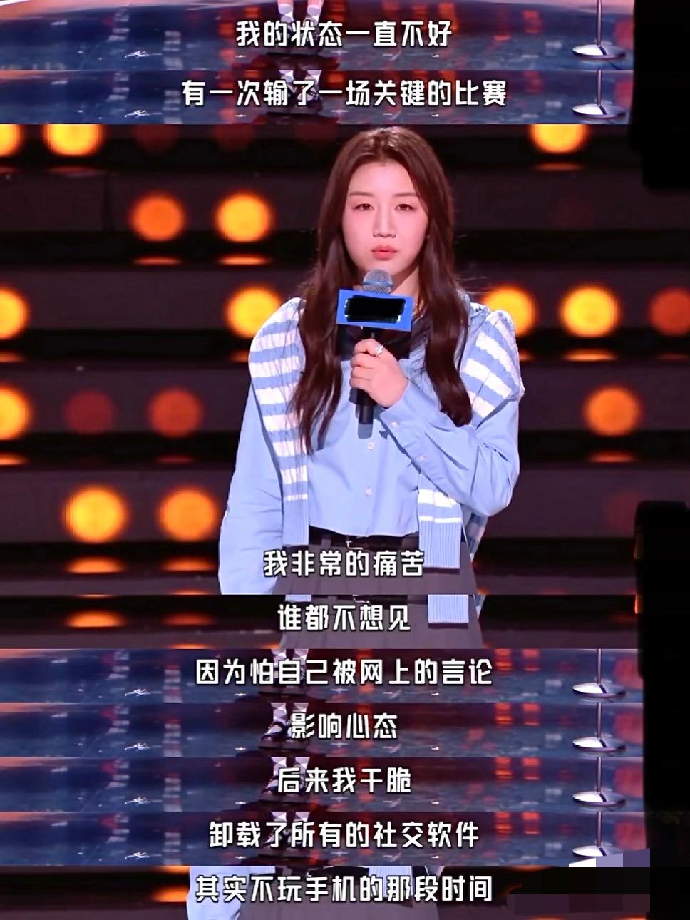 陈梦真幽默,谈状态不好可以一年不玩手机,腰弯方便挂金牌! 谈女运动员也可以美甲, 可以染头发! 近日陈梦在吐槽大会上谈 起自己的经历, 克服腰伤, 东京奥运会后遭到网暴, 做美甲被人说心思不在训练上, 输一场比赛后, 为了不影响心态,卸载了所有软件, 一年不玩手机, 屏蔽赛场以外的所有信息, 专注于赛场! 最后陈梦说, 女运动员也可以好好爱自己, 可以做美甲, 可以染头发, 我们不止赛场上的一面, 我们可以活成自己想要的模样! 陈梦的心态挺好, 技术也很不错, 特别是去年全运会上, 一年多没有参加比赛的她, 硬生生的站在领奖台上, 就凭这一点就已经很让人敬佩!