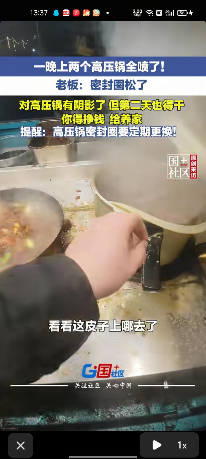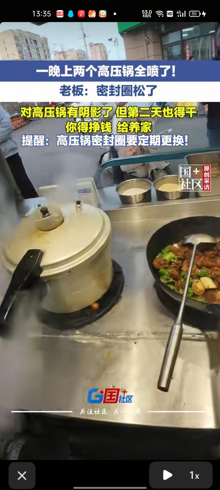 3月31日,山东青岛。老板发视频称,自己直播摆摊炒鸡时,高压锅突然爆炸,猜测是高压锅的密封圈松了。现在自己对高压锅有阴影,但还是要赚钱养家。这件事给大家提个醒,密封圈要定期更换