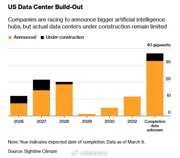 今年已宣布的12吉瓦数据中心容量中,目前真正进入施工阶段的只有三分之一。