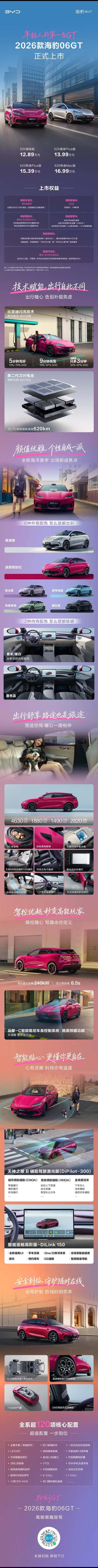 年轻人的第一台GT来了。一张图了解2026款海豹06GT,第二代刀片电池闪充技术,纯电620Km续航,12.89万-16.99万