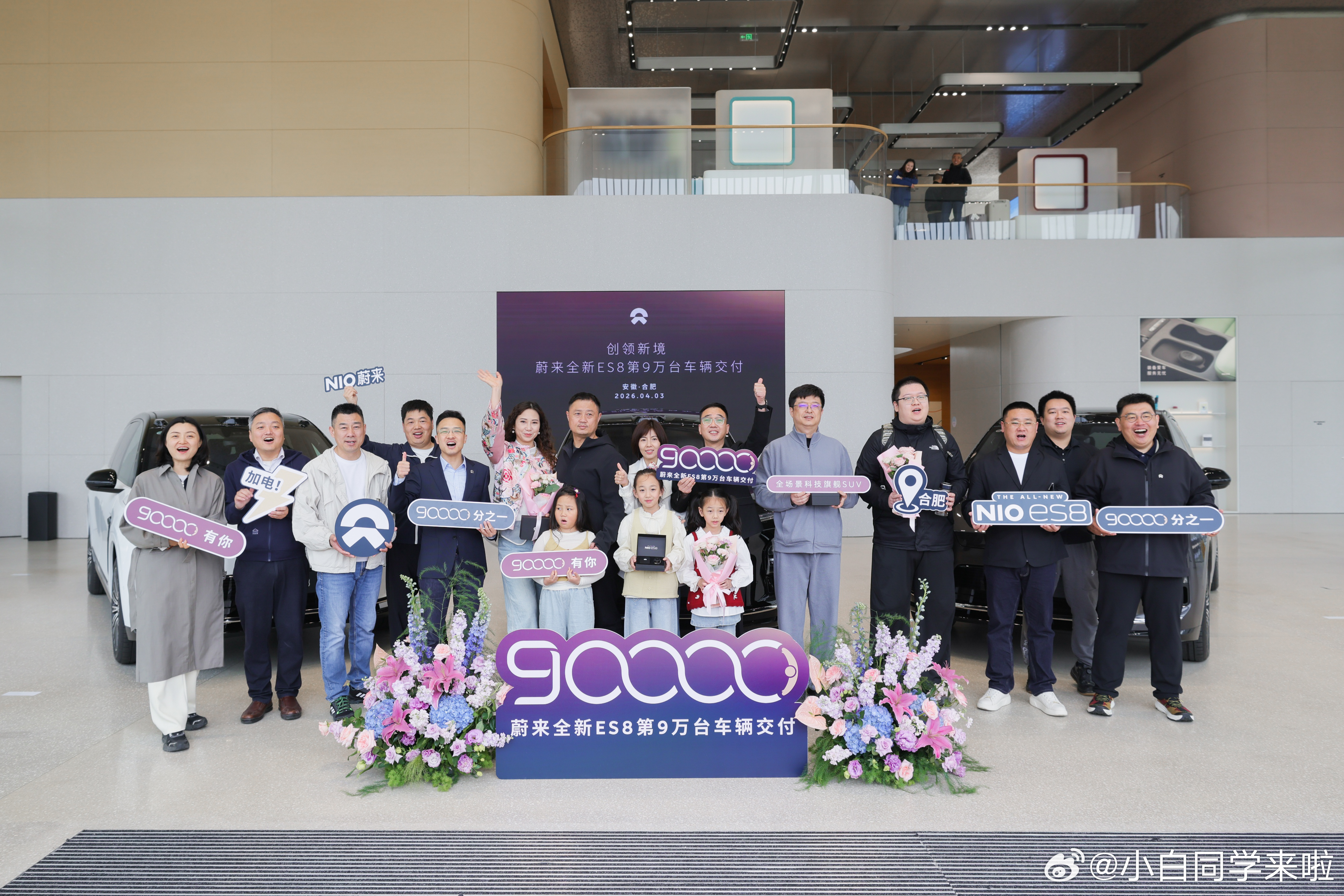 4 月 3 日,在合肥新桥产业园蔚来体验中心,蔚来全新ES8 完成了第 90,000 台新车交付。
