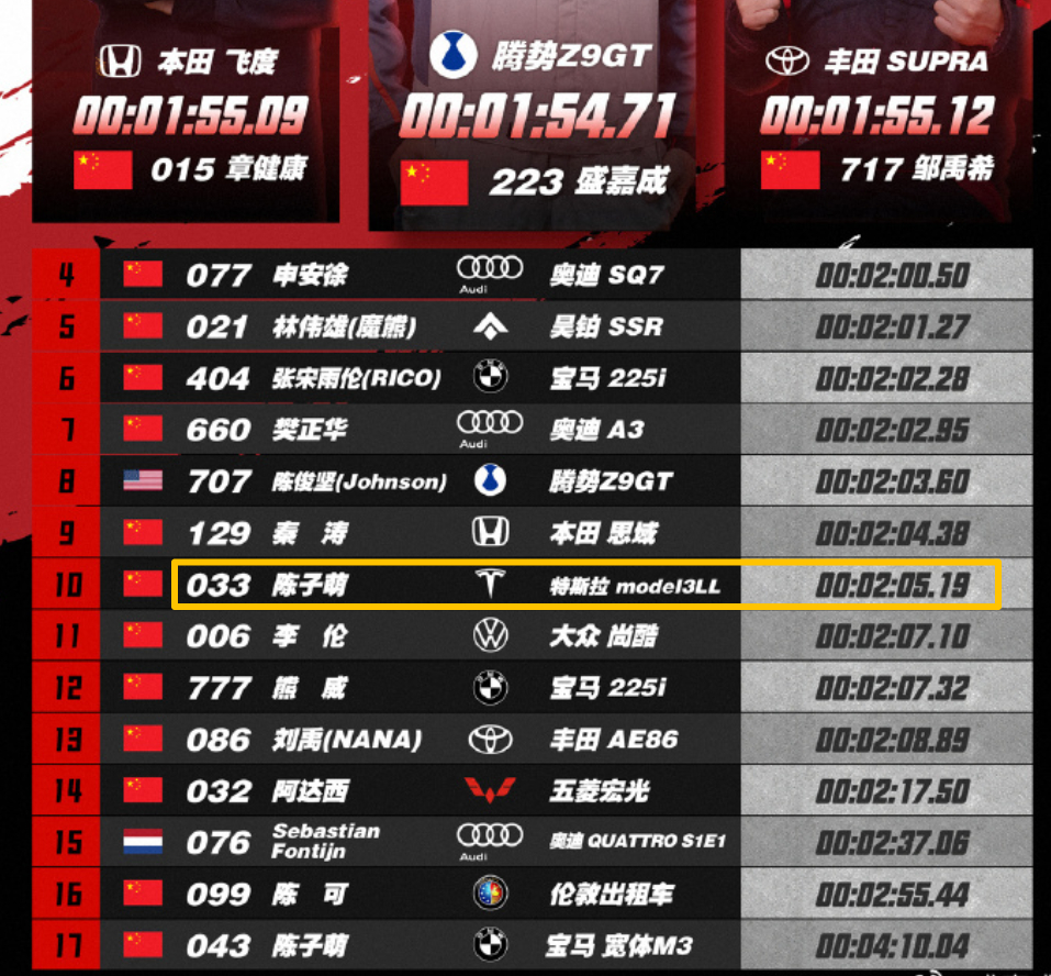 腾势z9gt操控之王 评论区有位网友甩过来一张成绩排行,问:操控之王特斯拉为什么跑不过腾势?