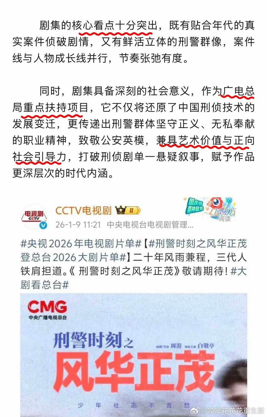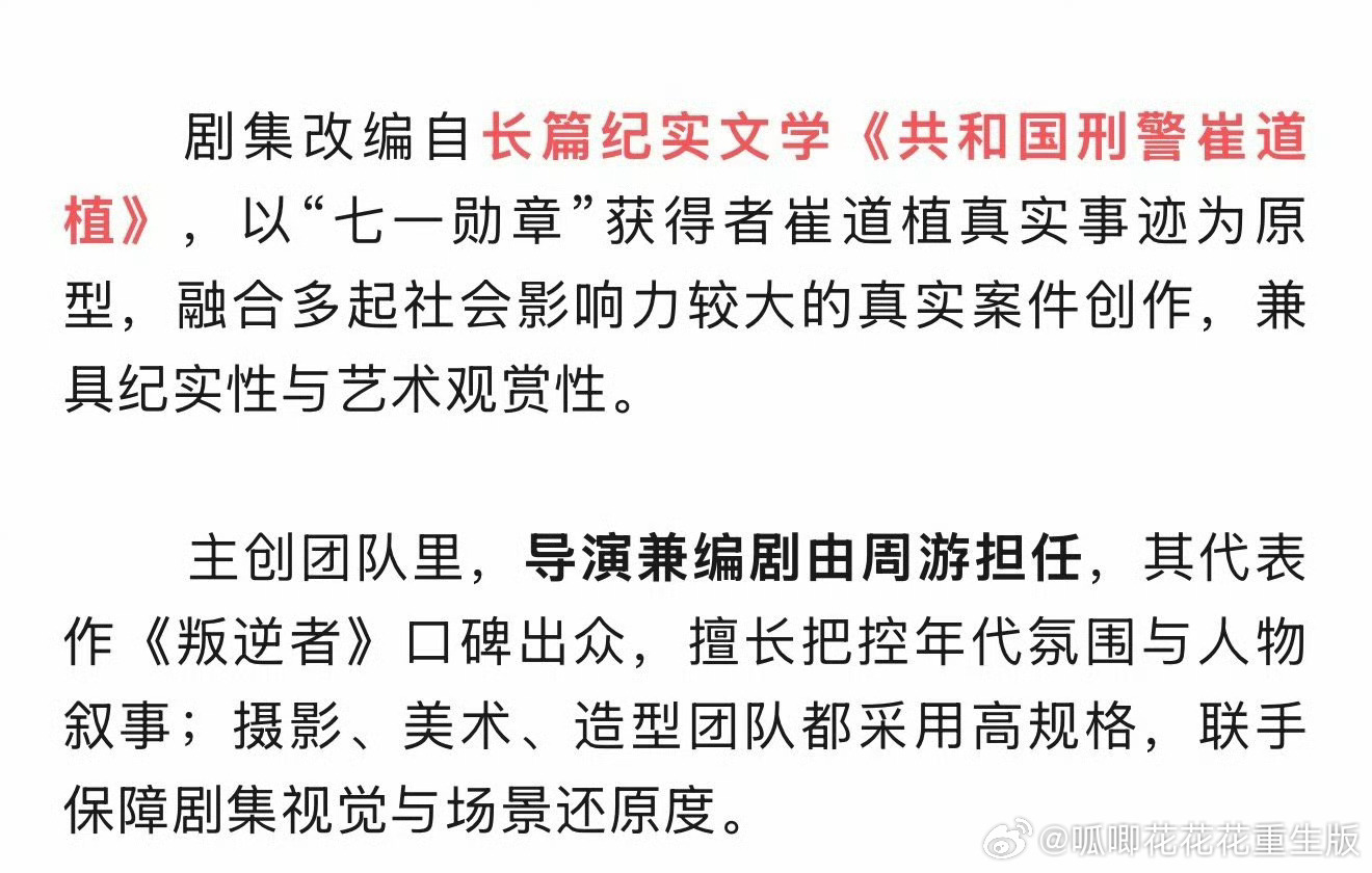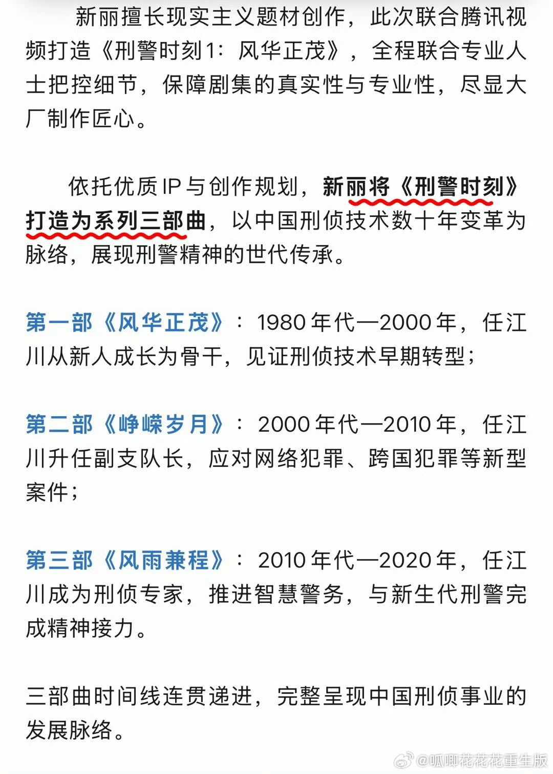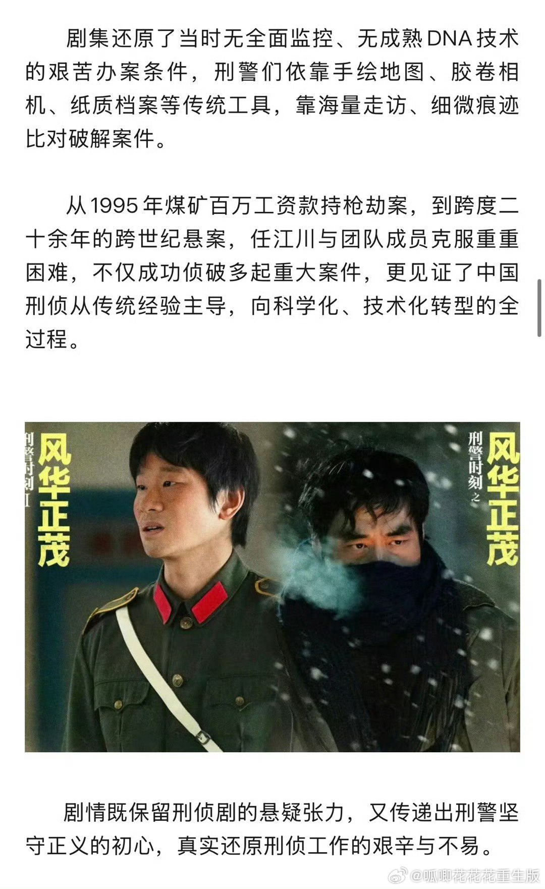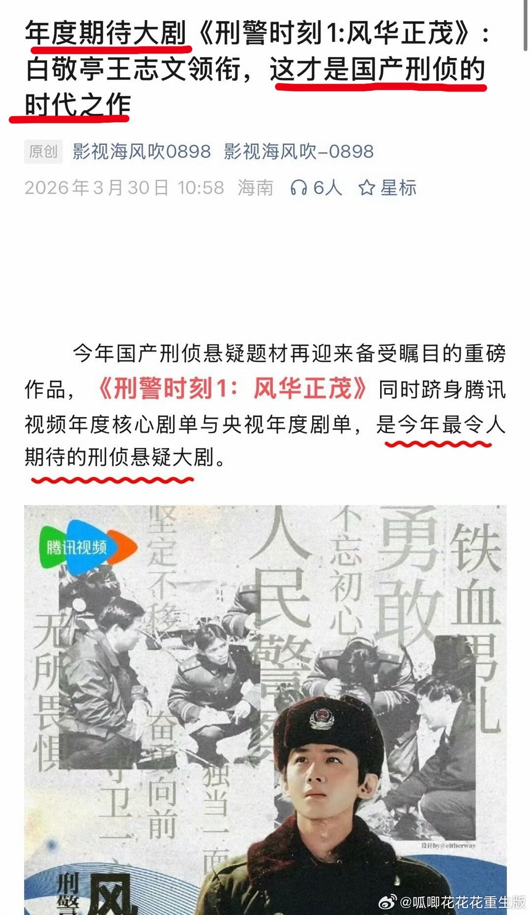 白敬亭《刑警时刻之风华正茂》这才是国产刑侦剧的时代之作!!!剧集核心围绕青年刑警任江川的核心支线展开,前期热血莽撞,后期沉稳细致,就这个人物的成长转变还得是小白来演,没有演技的话这个度真的很难把握住!广电局重点扶持项目,兼具艺术价值和正向引导力,以电影级标准打造年代质感,最快于今年冬季就能开启排播,而且有三部曲,不得不说这样的人物成长,故事发展真的只有白敬亭扛得住了!!!