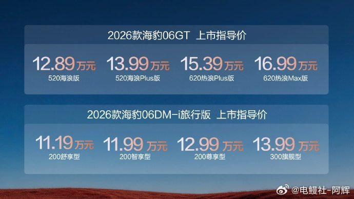 一边是闪充性能、操控拉满的GT,一边是超低油耗、能装能跑的旅行版,11万起就能拥有比亚迪高品质新能源。性能与实用,你更倾向哪一款?2026款海豹06GT&海豹06DM-i旅行版大v聊车