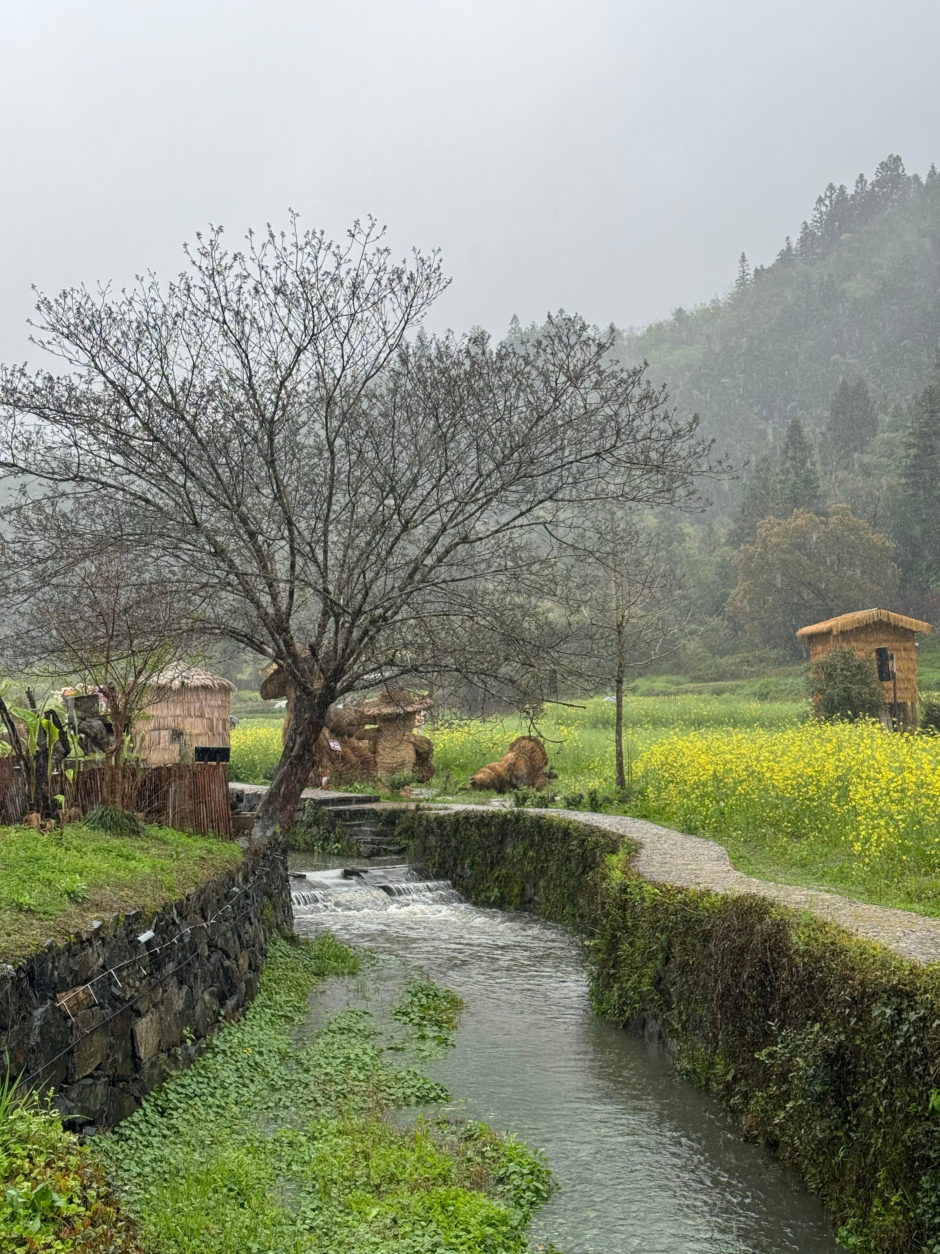 雨后徽州,云雾缭绕,溪水潺潺。