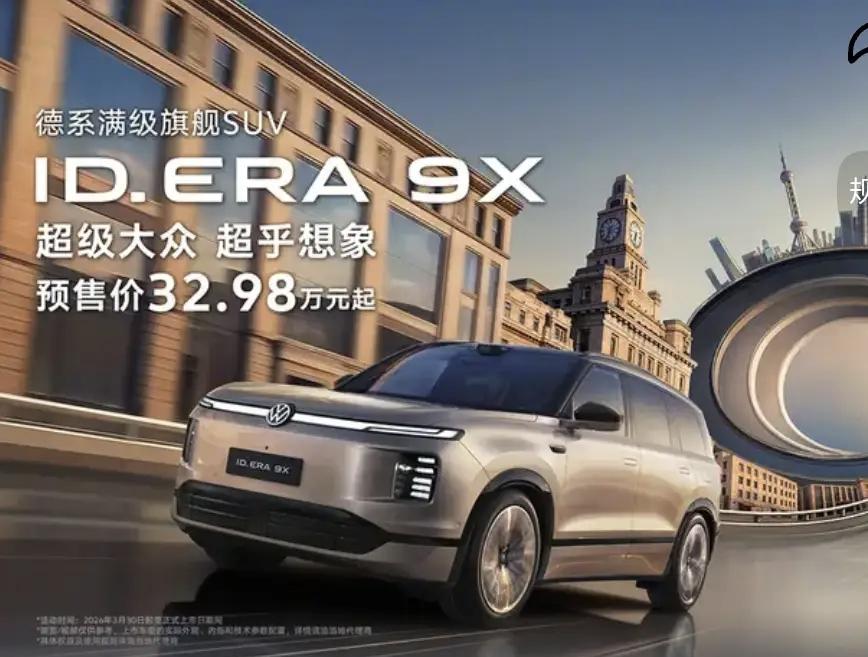 3🌹大众9X预售发布 不得不承认,作为德系满级旗舰SUV,ID.ERA 9X将配置与舒适做到极致。 2🌹 f42itoIfuQ0` :3pm pib:/ 5.2米超长车身搭配零重力座椅、双腔空气悬架,商务出行尽显大气,家庭出游也能全家总动员、满载温馨! 大众9X的底盘操控更是灵活智能,通过前双叉臂+后五连杆悬架、双腔空气悬架及VMC底盘智控中枢的组合,将转弯半径优化至4.85m,灵活性优于同级。