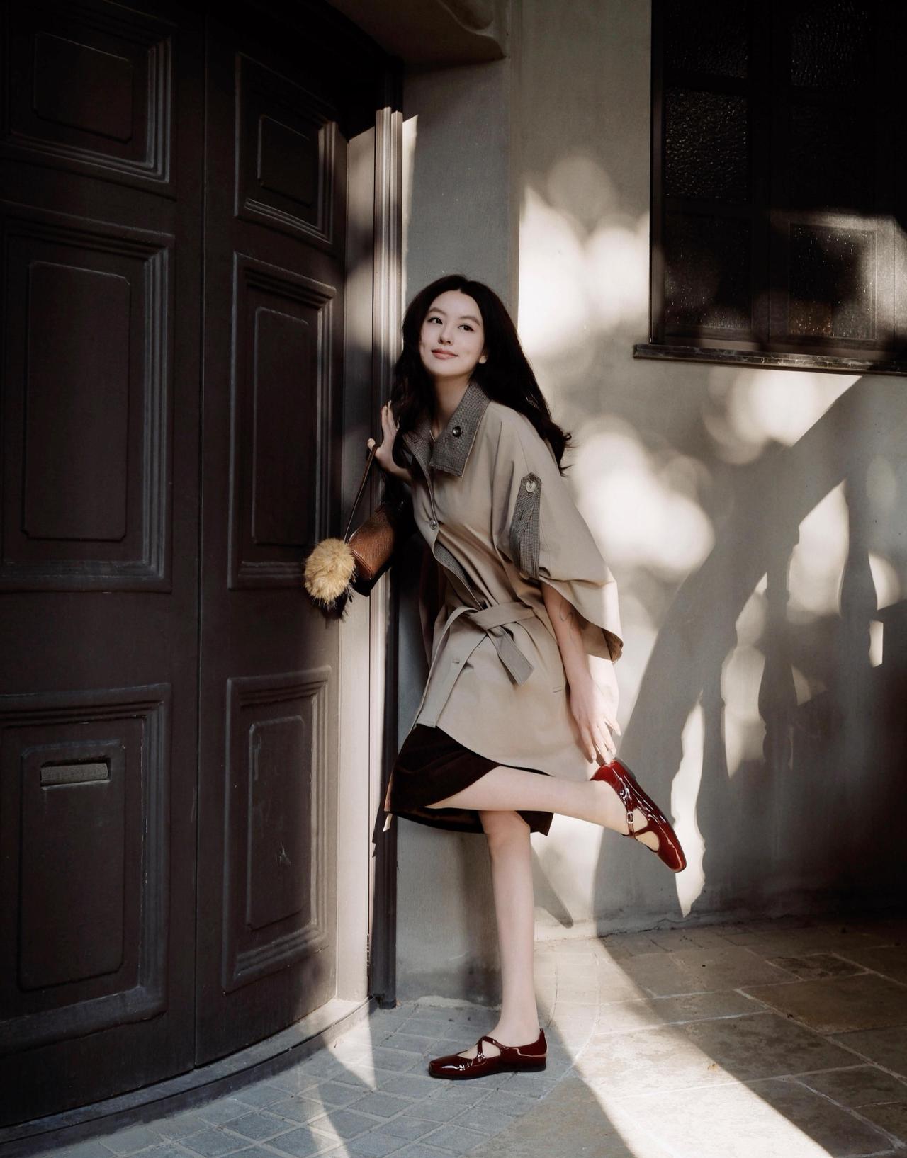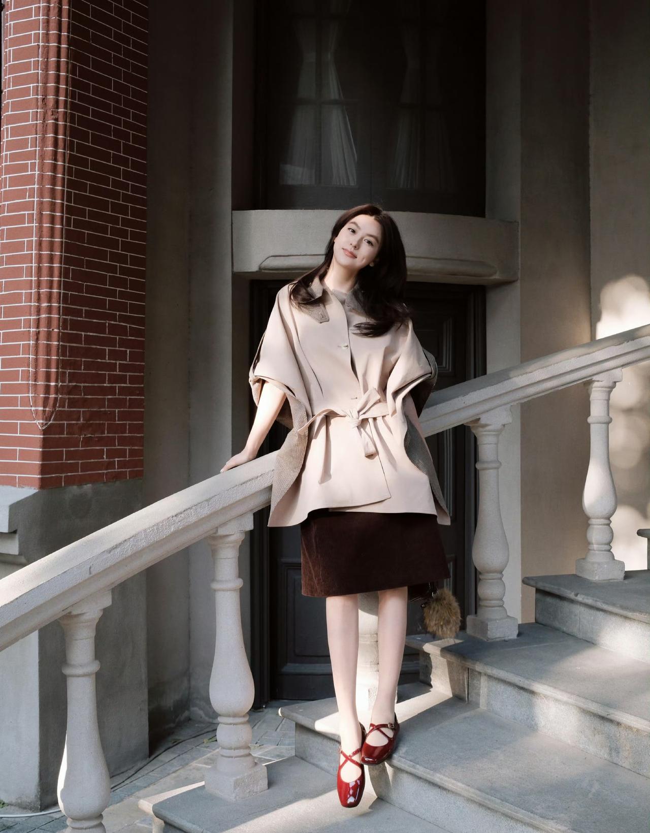这套穿搭太有“温柔知性感”了!浅卡其斗篷式外套自带松弛优雅,深棕半裙添了复古质感,酒红玛丽珍鞋又点亮了整体,是气质又耐看的日常风格。卡其外套穿搭 卡其温柔穿搭