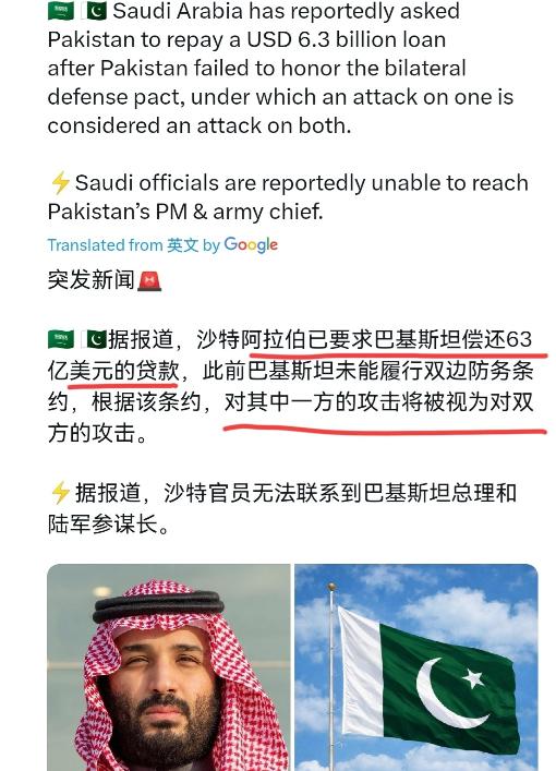 没想到巴基斯坦与沙特的关系会闹到这一步!沙特对巴基斯坦进行上门逼债!4月3日,根据外媒报道,外媒称,沙特阿拉伯要求巴基斯坦偿还63亿美元的贷款。因为巴基斯坦未能履行双边防务协议,根据该协议,对一个国家的攻击被视为对两个国家的攻击。 沙特上门向巴基斯坦索要63亿美元贷款的消息,看似突然实则早有伏笔。 这场风波的根源,是去年两国签下的那份共同战略防御协议,核心约定很明确,对其中一国的攻击就等于对两国的共同侵略,巴基斯坦出军事保护,沙特出资金援助和贷款。 原本是各取所需的合作,却在中东战争的冲击下彻底变了味。 巴基斯坦从一开始就没真正打算兑现军事保护的承诺。 它的军事重心始终盯着邻国印度,主力部队根本抽不开身去支援沙特。 更关键的是,伊朗是巴基斯坦的周边大国,一旦真的按照协议帮沙特对抗伊朗,巴基斯坦很可能陷入多线作战的困境,这是它无论如何都不愿承受的风险。 所以当伊朗的导弹落在沙特境内,能源设施遭打击,人员出现伤亡时,巴基斯坦只做了口头警告,提醒伊朗保持克制,却始终没有启动协议里的协同防御机制,既没派兵也没提供实质支援,这份安全保障成了空架子。 沙特这边的处境同样艰难。 它之所以急着要回贷款,核心是自身财政出了大问题。 霍尔木兹海峡被封锁后,沙特的原油出口锐减,3月日均出口量从2月的710.8万桶跌到435.5万桶,还有5600万桶原油困在波斯湾运不出去。 石油收入是沙特的经济命脉,收入断流的同时,还要承担地区冲突带来的高额防务开支,自身已经捉襟见肘。 原本承诺给巴基斯坦的100亿美元炼油厂等投资项目,自然只能搁置。 沙特当初花钱签协议,图的就是关键时刻能有人撑腰,现在钱花了,安全没保障,投资也落了空,自然要通过追讨贷款减少损失。 中东战争的爆发,彻底撕开了两国合作的裂痕。 美以与伊朗的冲突升级后,沙特成了伊朗的打击目标,而巴基斯坦的态度却逐渐转向。 它先是保持中立,后来干脆公开谴责以色列,宣称与伊朗人民站在一起。 这在沙特看来,无疑是盟友倒向了对手阵营,原本的安全协议彻底失去了意义。 更让沙特不满的是,巴基斯坦此前已经部署到沙特的防空系统,在冲突中没能发挥有效作用,所谓的“核保护伞”也只是口头说说,没有任何实际体现。 巴基斯坦的处境也很尴尬。 它的经济虽然有一定增长,2024-2025财年GDP增速达到3.04%,但基础依然薄弱,高度依赖外部资金支持。 当初签协议的核心诉求就是拿到沙特的贷款和投资,缓解财政压力,可现在不仅投资泡汤,还要偿还巨额贷款,无疑是雪上加霜。 更严重的是,它在伊斯兰世界的声望受到重创,原本想靠保护沙特树立“领头羊”形象,结果却因畏缩不前丢了面子,还被海湾国家看清了其不愿为盟友出力的本质。 两国关系走到这一步,本质是利益交换的失衡。 沙特需要的是能落地的安全保护,巴基斯坦想要的是不附加条件的资金援助,可一旦遇到实际冲突,双方都优先考虑自身利益,不愿为对方付出代价。 沙特的财政困境让它无法再扮演“金主”角色,巴基斯坦的地缘政治顾虑让它不敢履行军事承诺。 这场合作从一开始就建立在各自的功利诉求上,没有真正的互信基础,中东战争只是一个催化剂,让这种脆弱的盟友关系彻底暴露了短板。 后续的发展更能说明问题,双方曾探讨用“枭龙”战斗机抵偿20亿美元债务,可随着关系恶化,这类协商大概率会搁置。 沙特的贷款追讨会进一步加剧巴基斯坦的财政压力,而巴基斯坦在中东的战略地位也会随之下降。 两国的经历也折射出中东地缘政治的现实,没有永远的盟友,只有永远的利益,当合作无法满足各自的核心诉求时,曾经的约定随时可能失效,留下的只会是利益纠葛和关系裂痕。